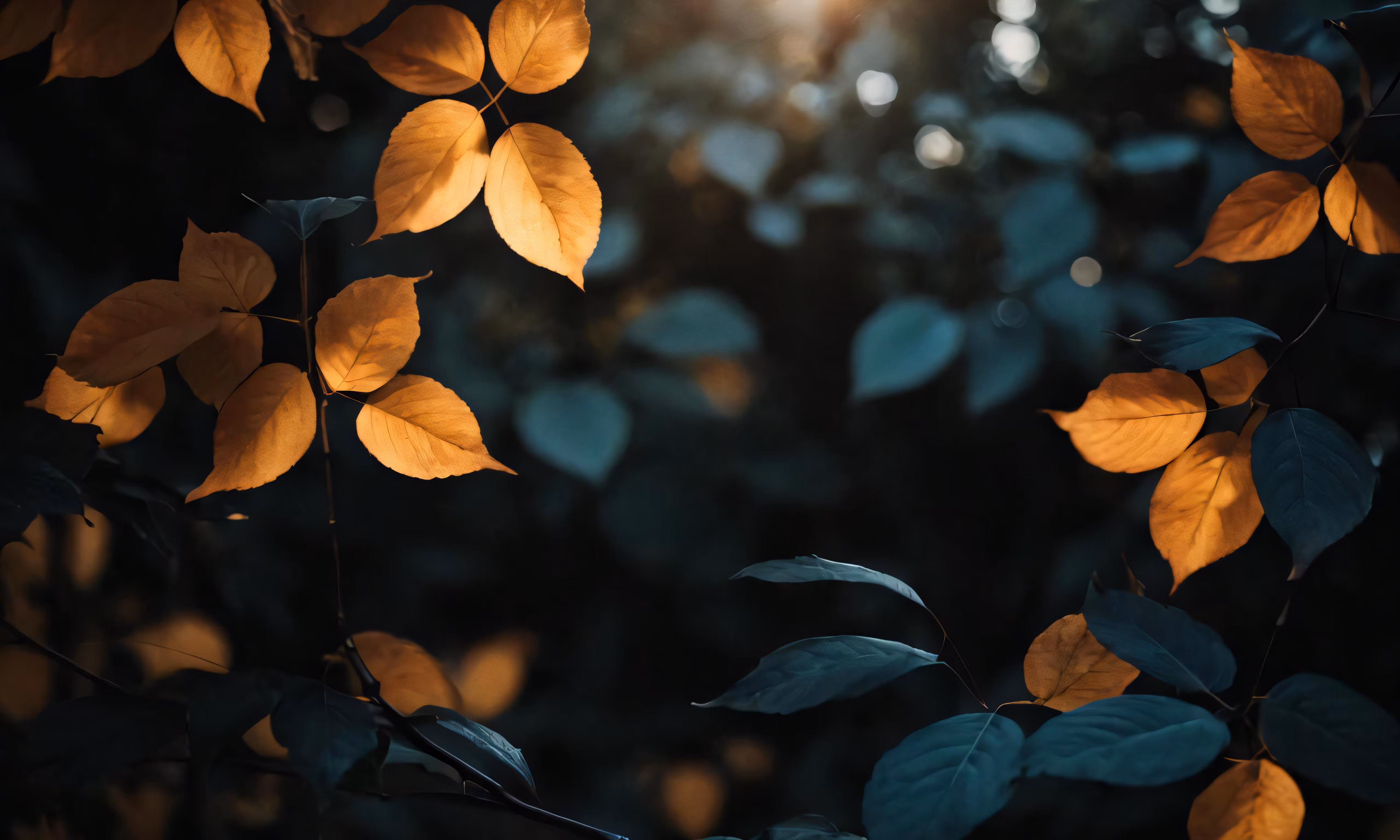 High resolution picture, free to use, bright autumn leaves against a bright and blurry backdrop