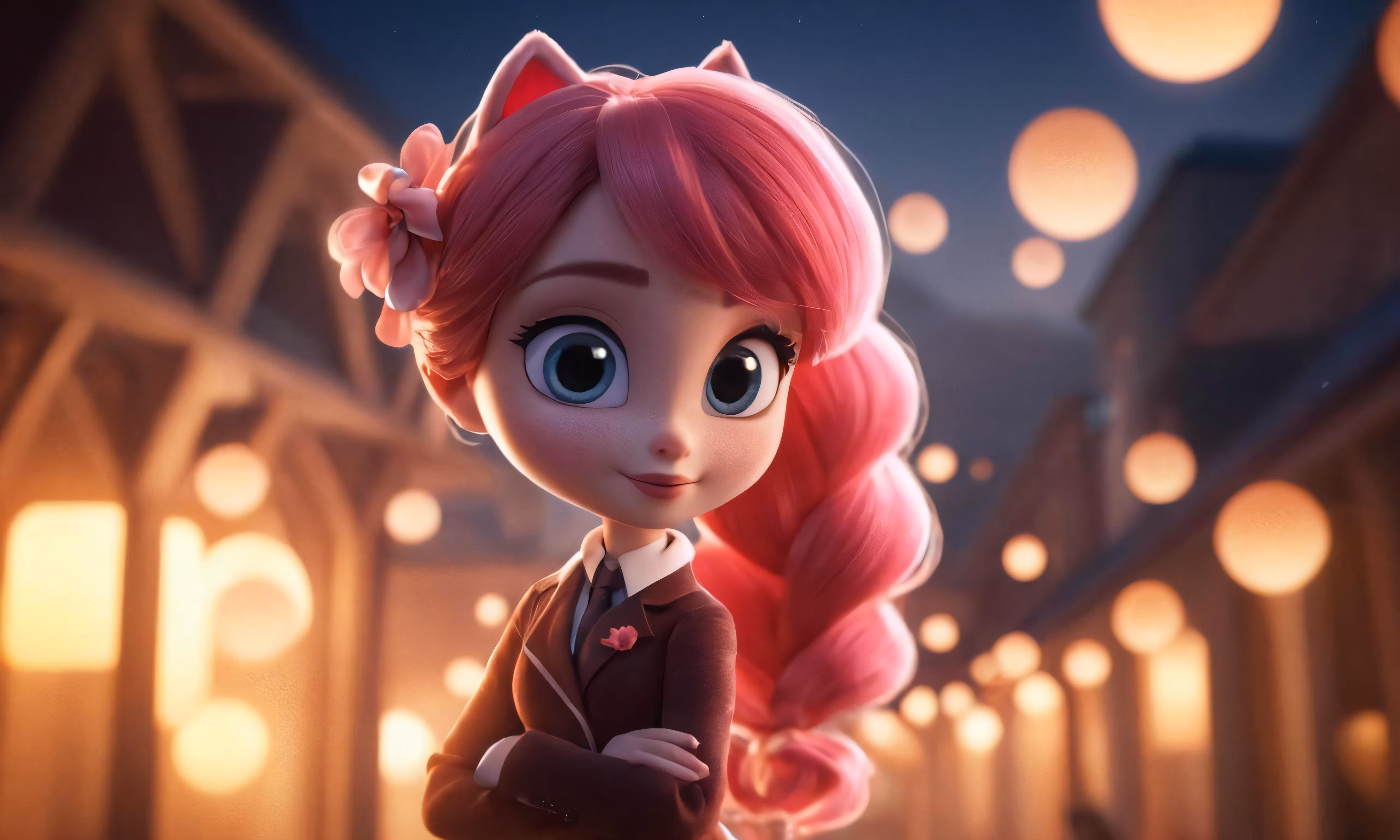 High resolution picture, free to use, cartoon character with pink hair wearing a dress and bow