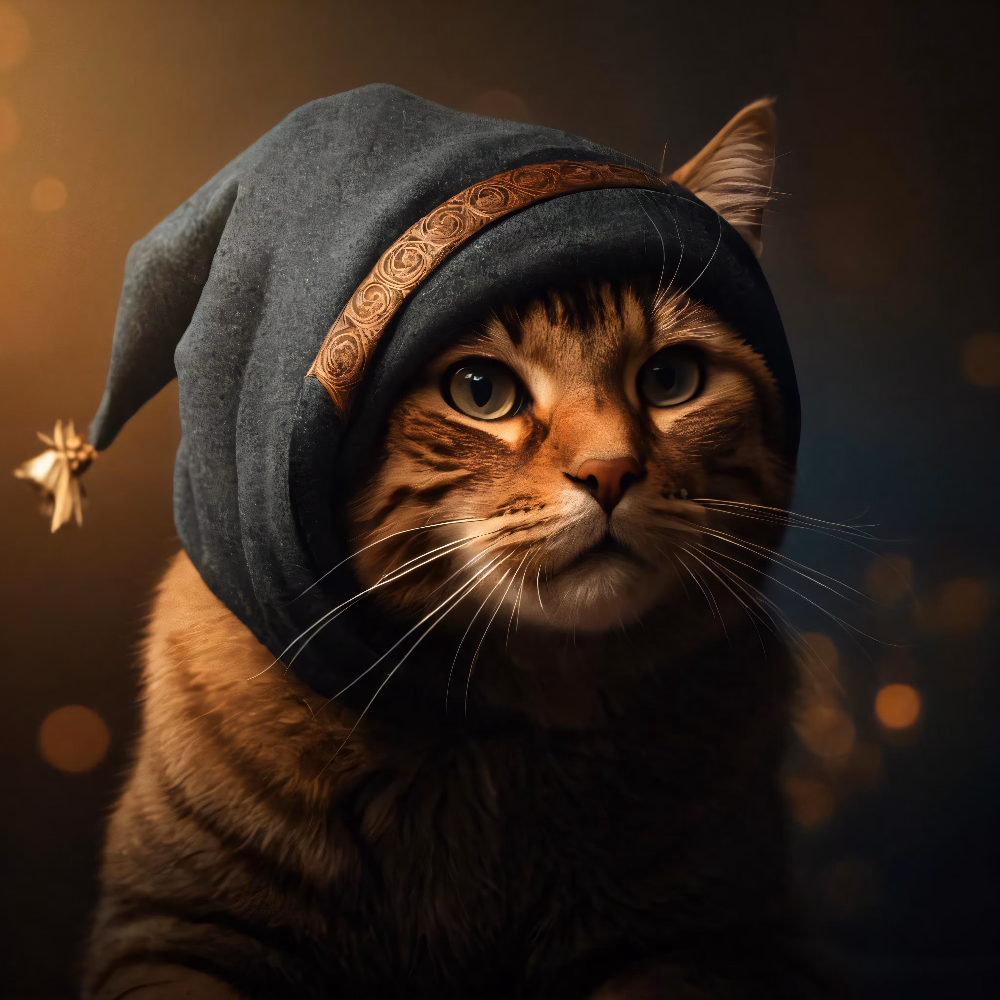 High resolution picture, free to use, cat wearing blue hat against blurred boke of light