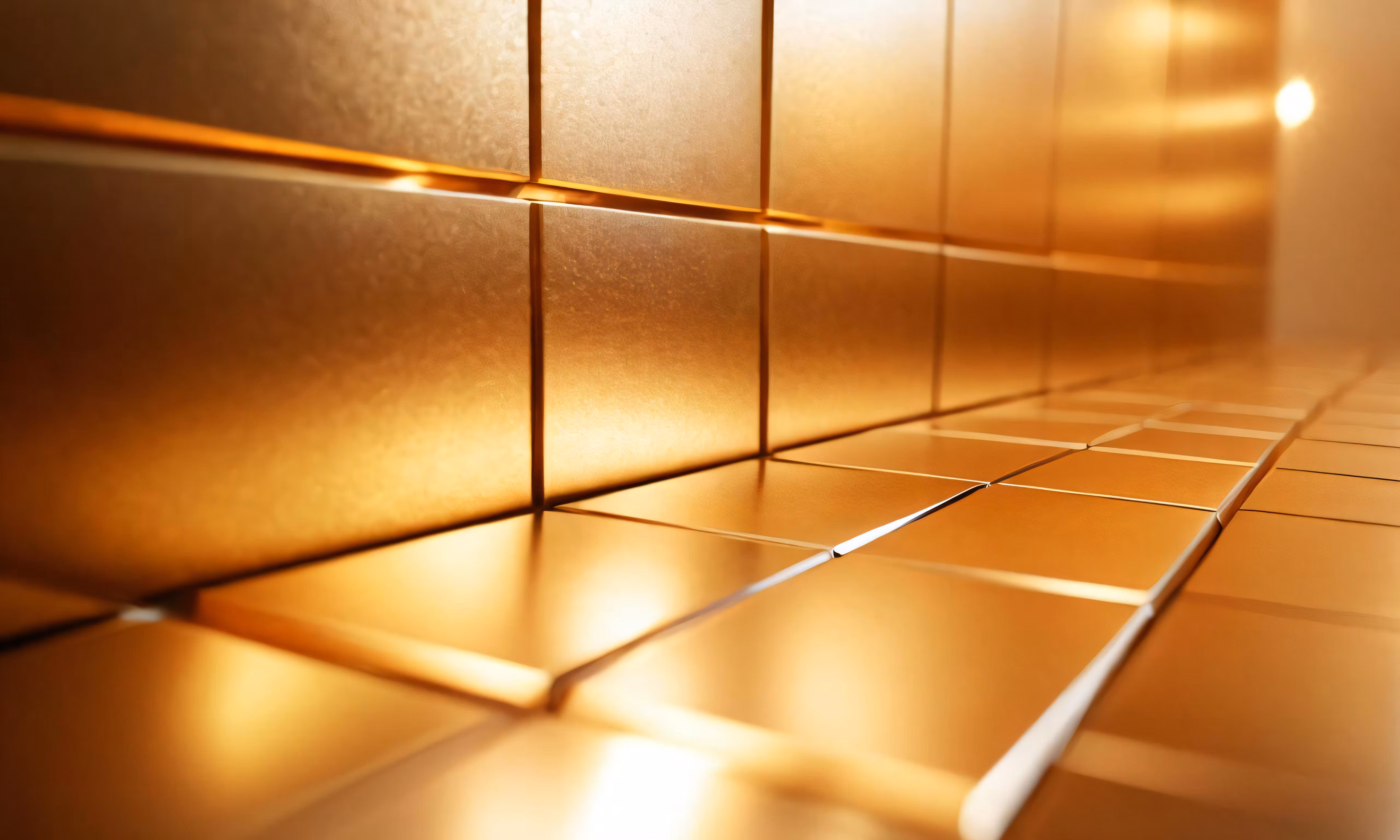 High resolution picture, free to use, close up view of a tiled wall with golden colors