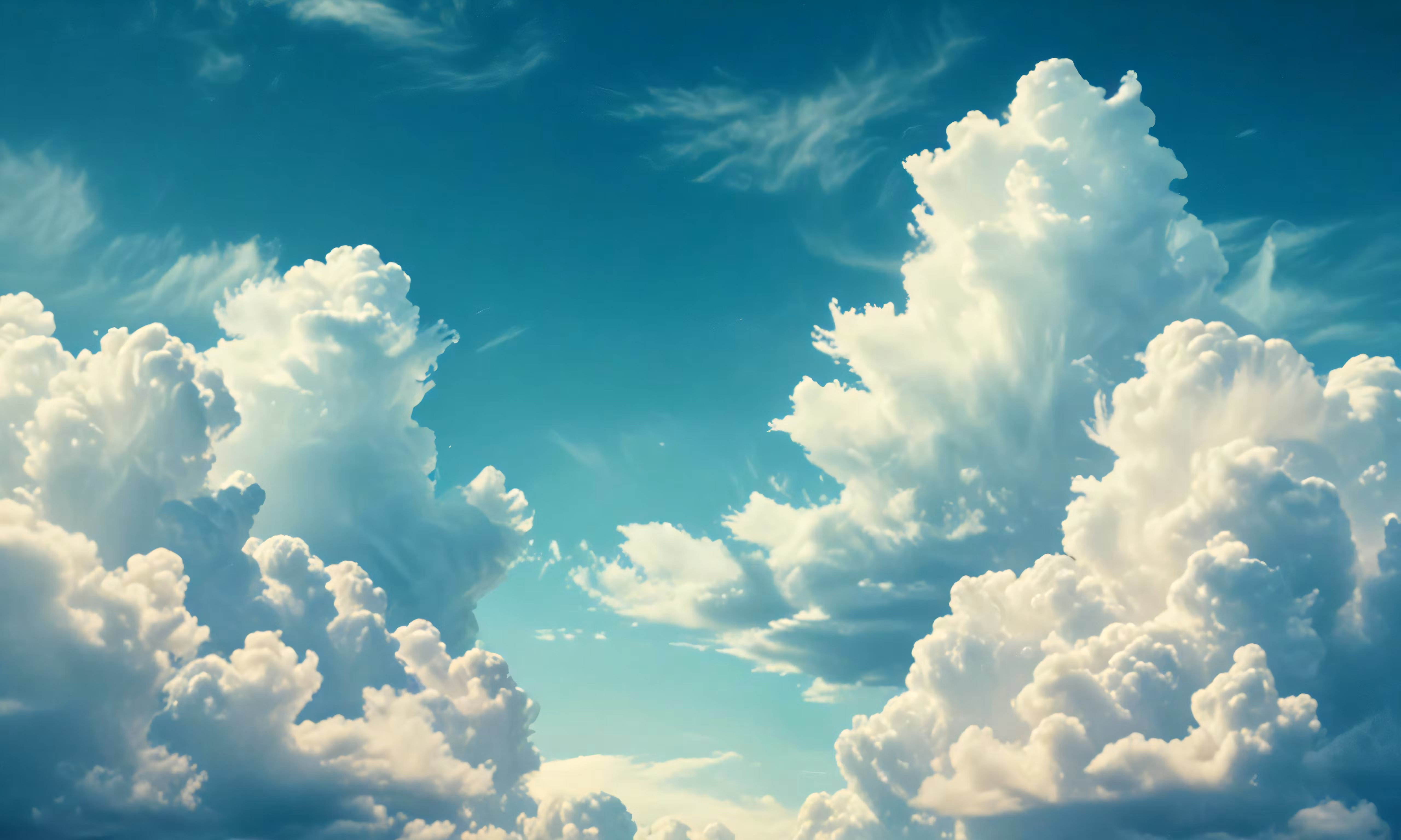 High resolution picture, free to use, clouds in the blue sky with one bird flying above it