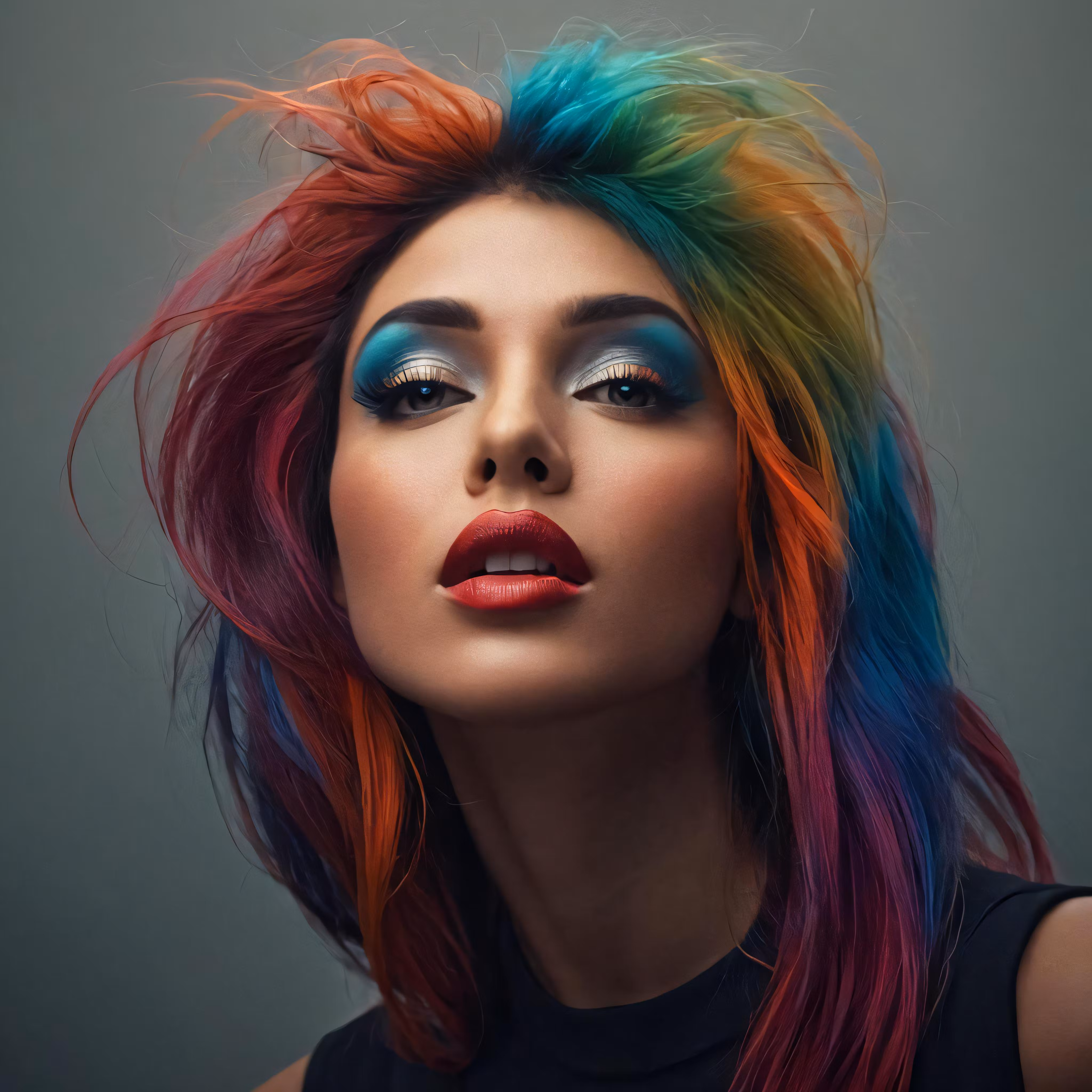 High resolution picture, free to use, colorful hair girl with red lipstick and bright makeup