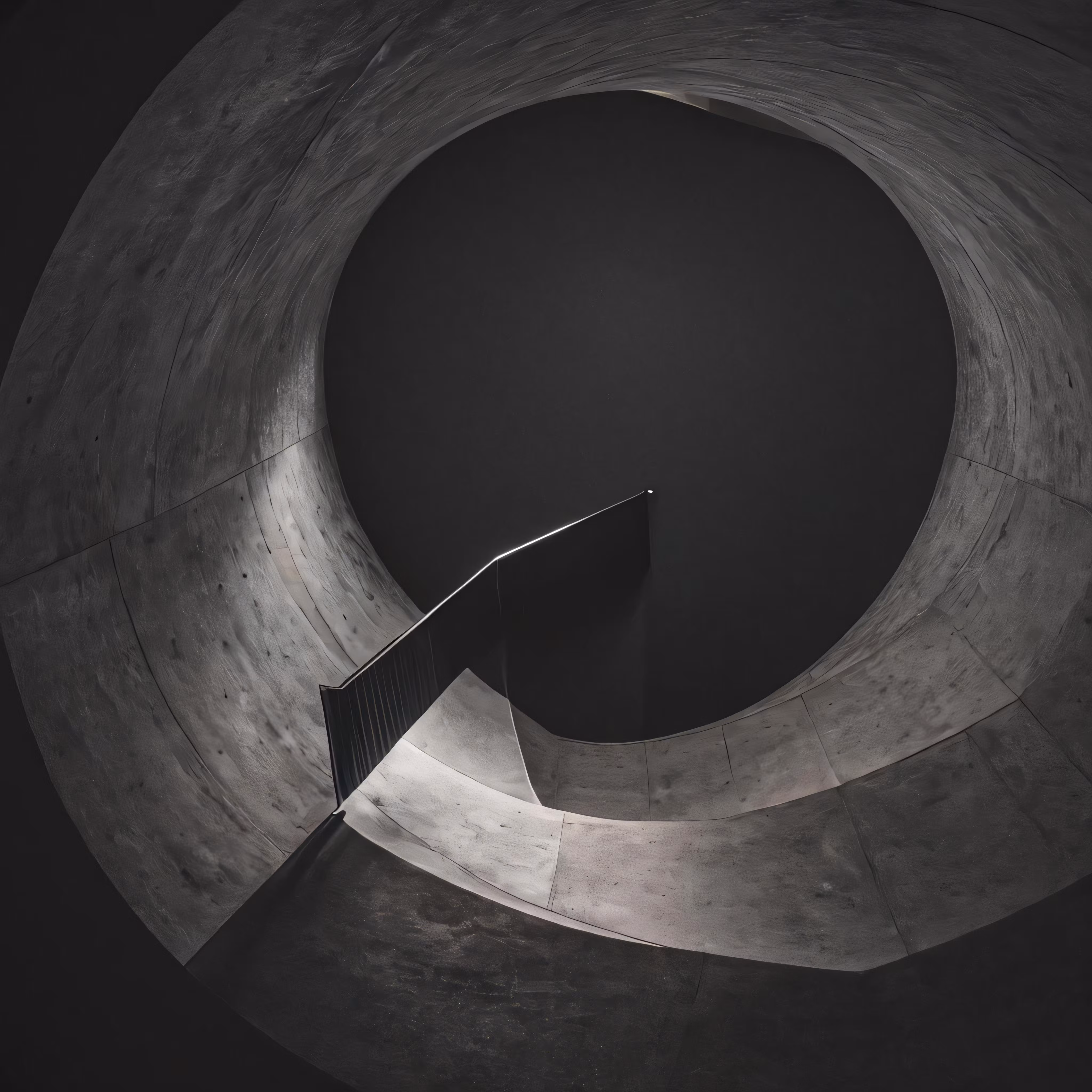 High resolution picture, free to use, concrete structure with dark lighting and the stairs on either side