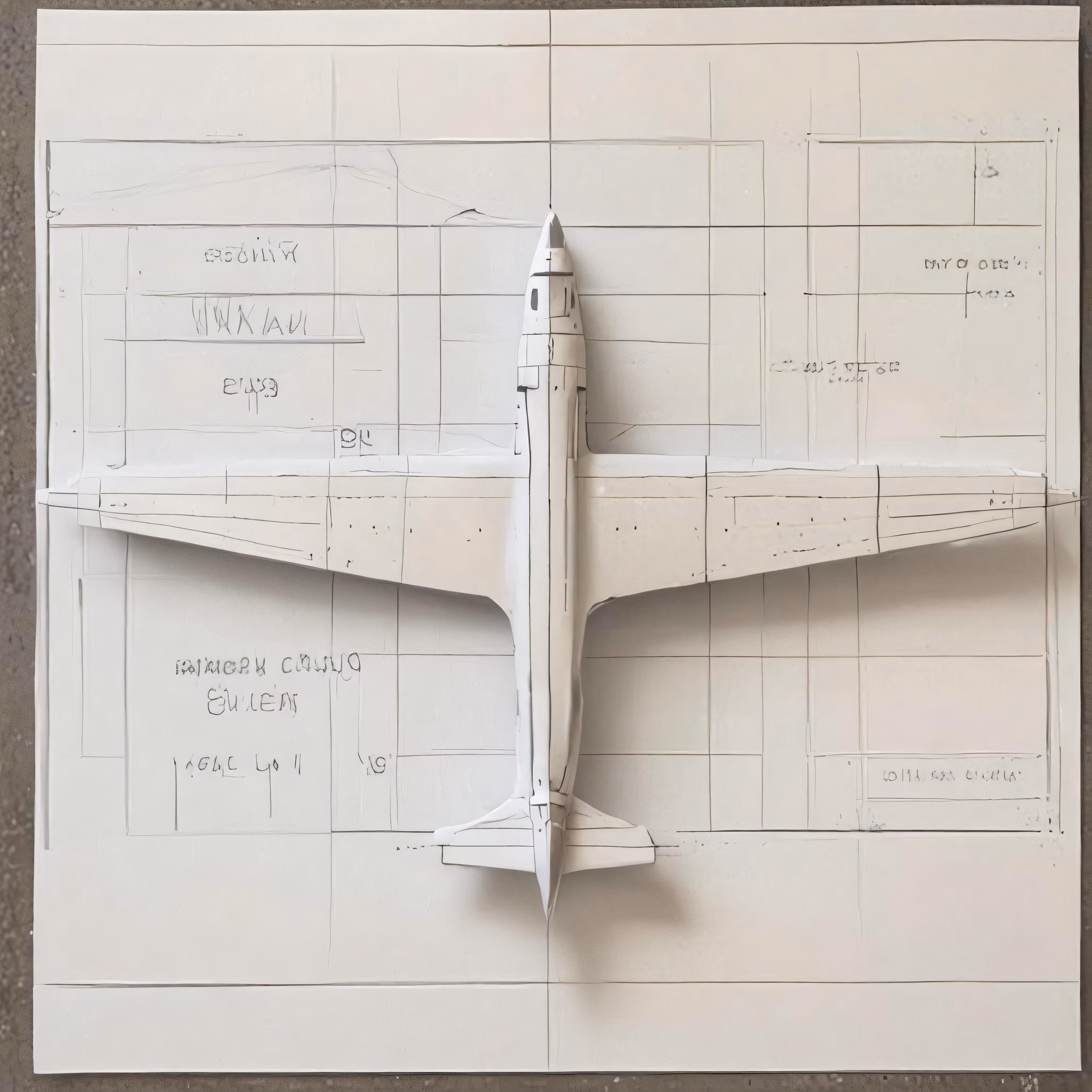 High resolution picture, free to use, cut out plan for airplane with numbers and other details on a table