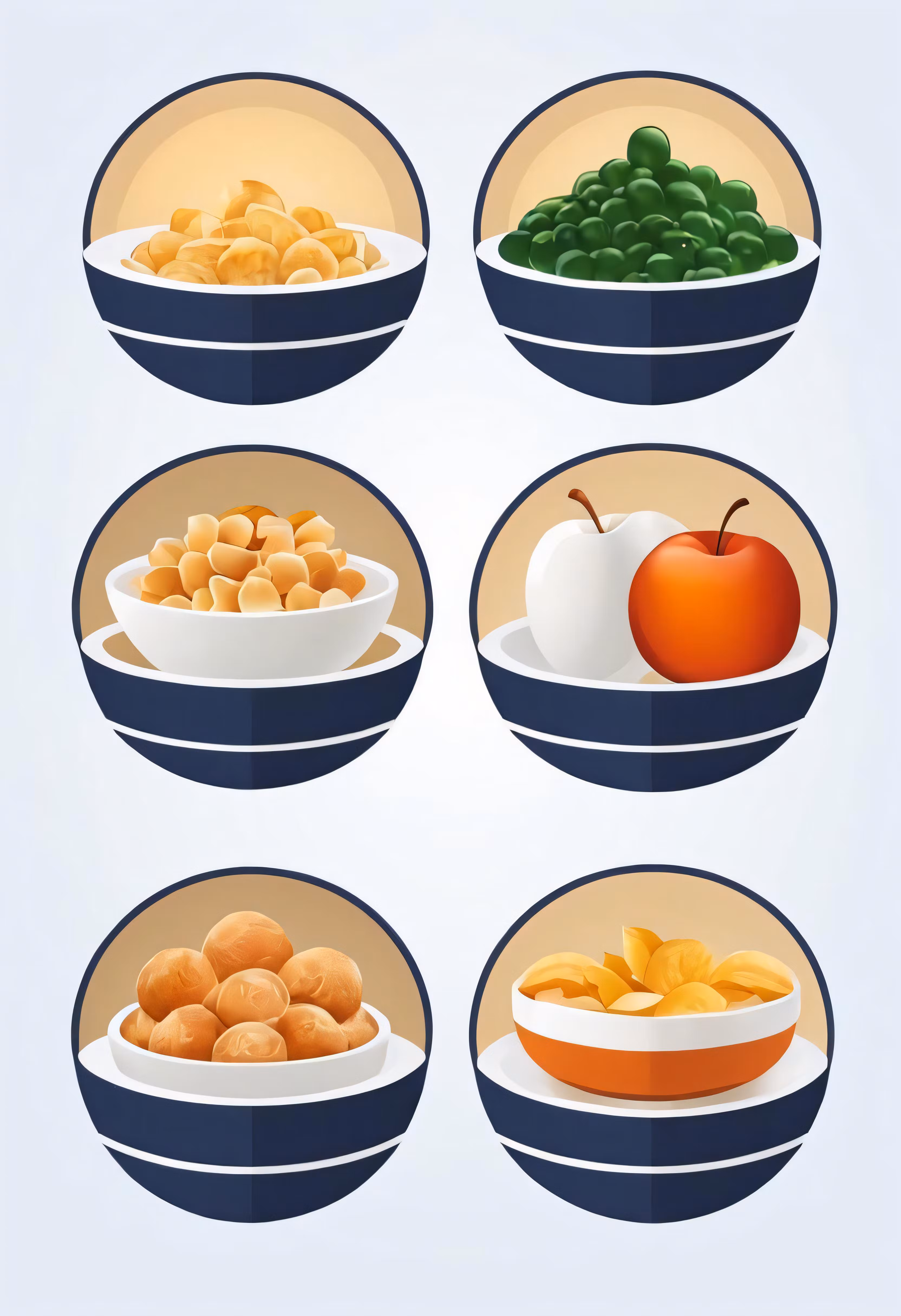 High resolution picture, free to use, different bowls containing different foods arranged in the shape of squares