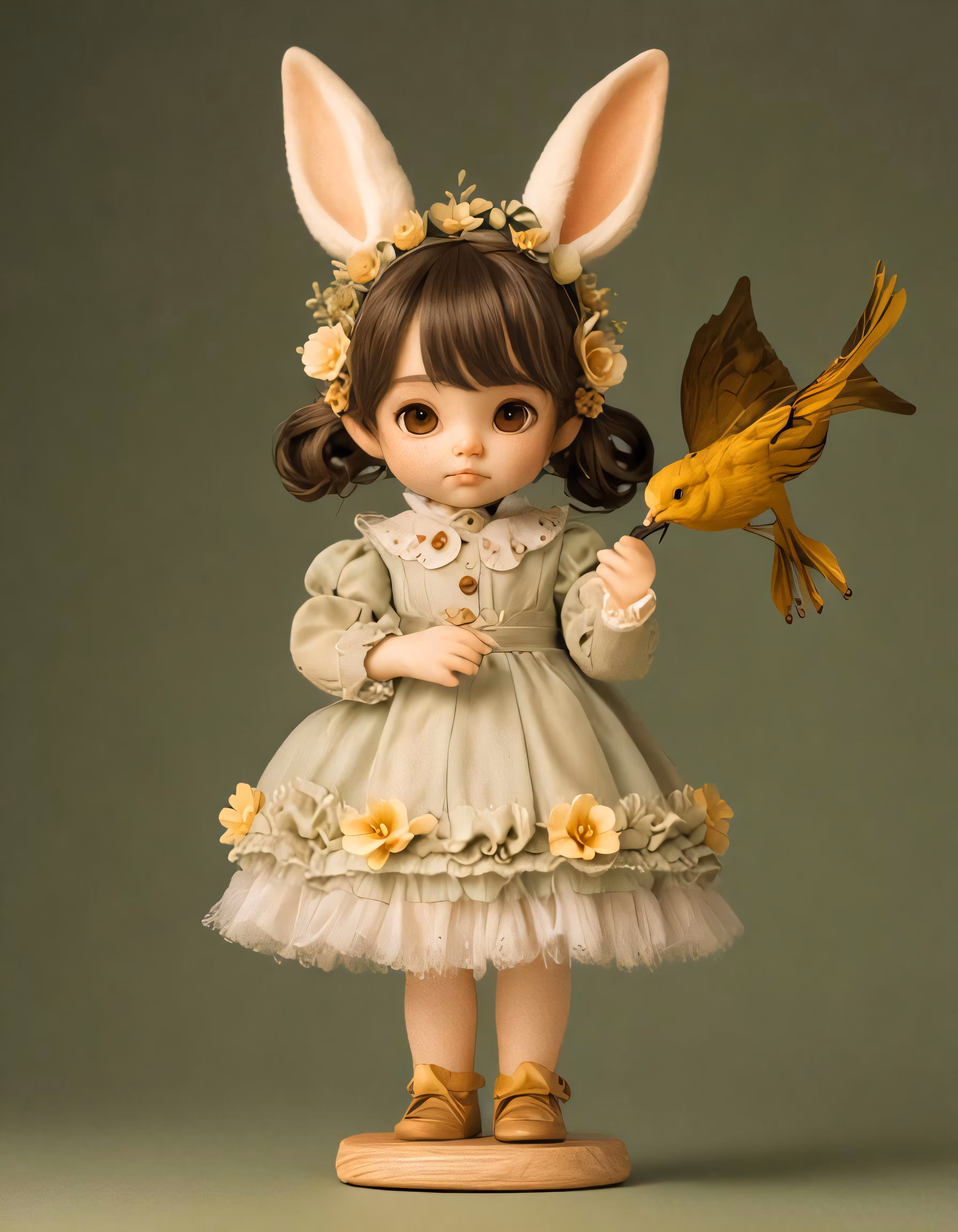 High resolution picture, free to use, doll with an easter bunny outfit and yellow bird
