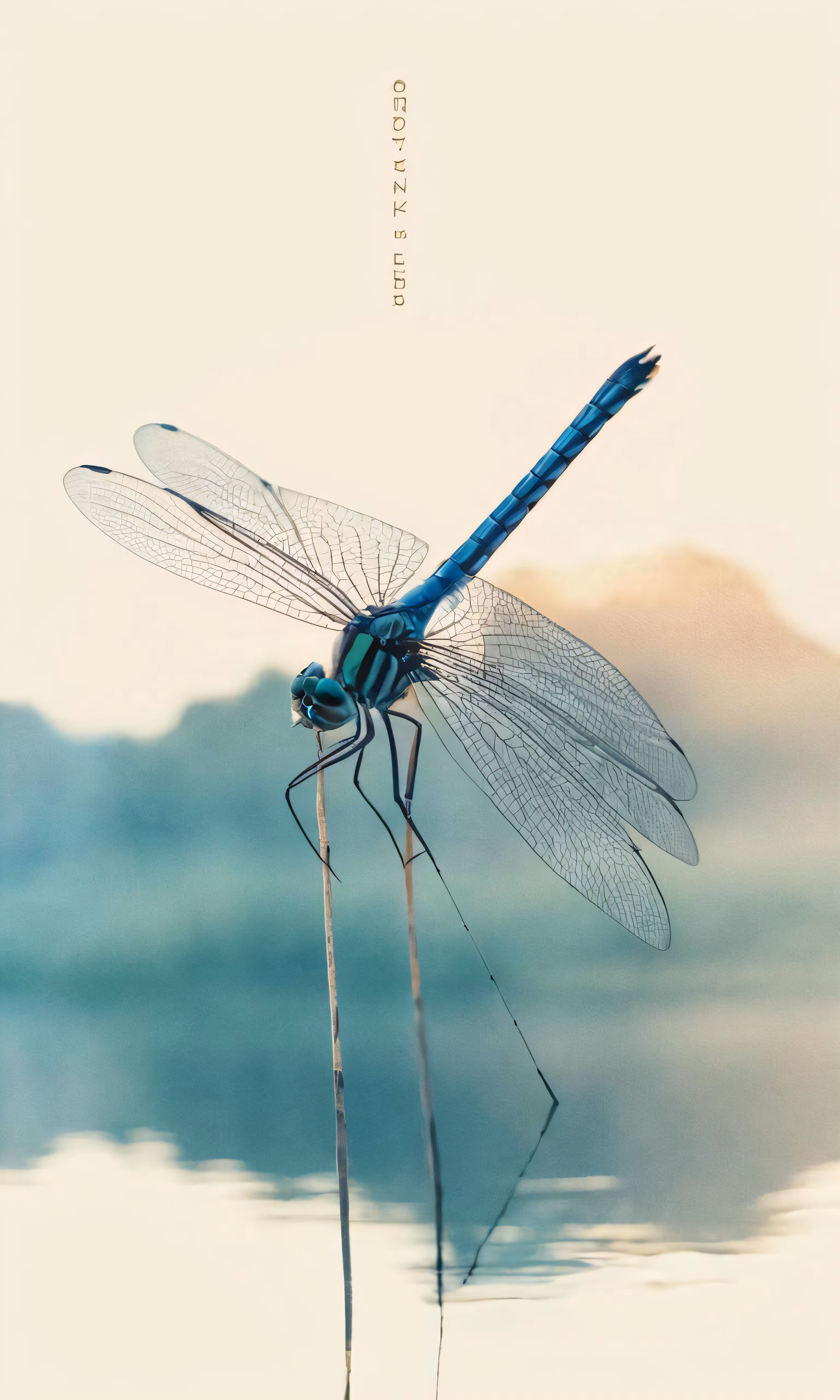High resolution picture, free to use, dragon flys from its wings over water on an overcast day