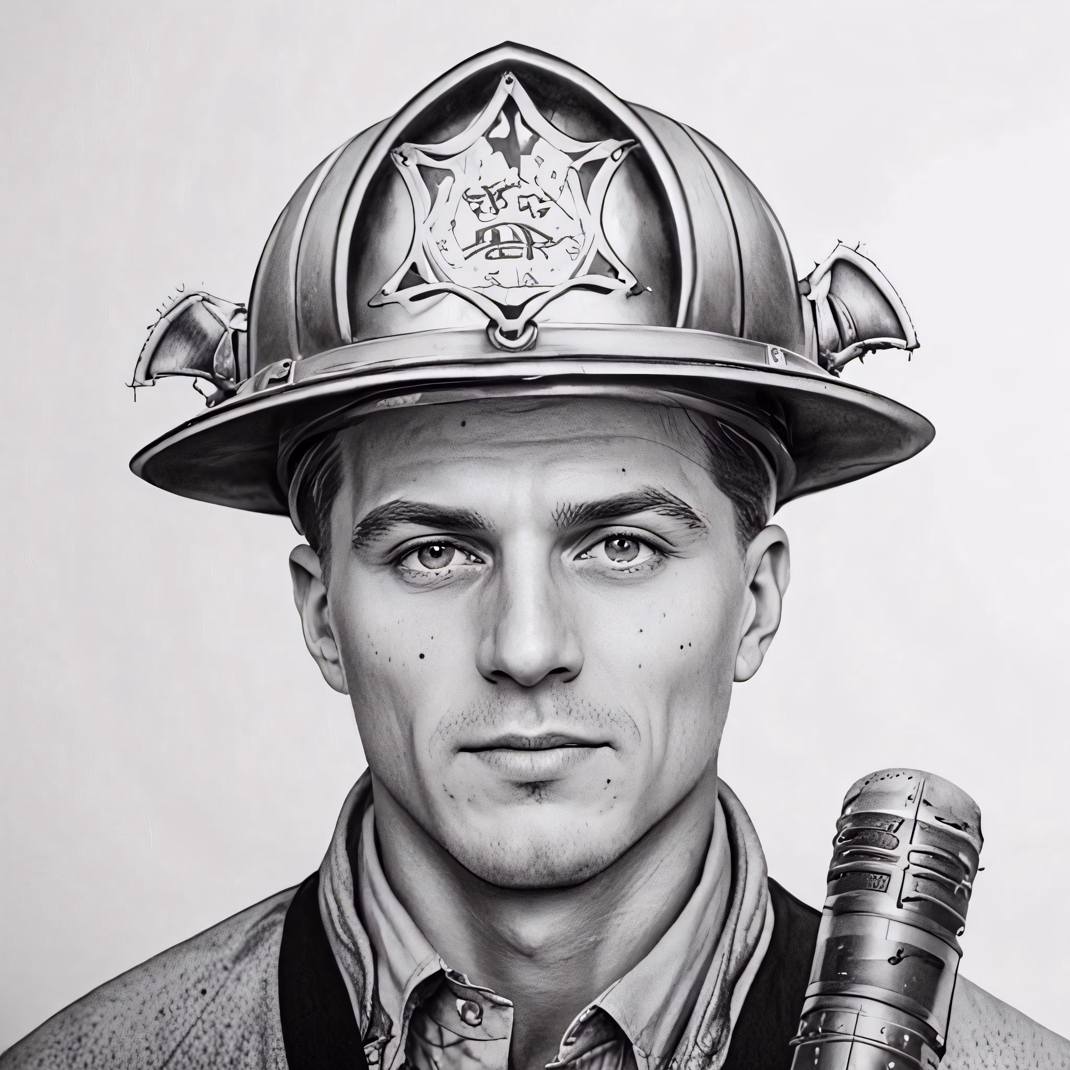 High resolution picture, free to use, drawing of a fireman wearing a red fire helmet with a microphone