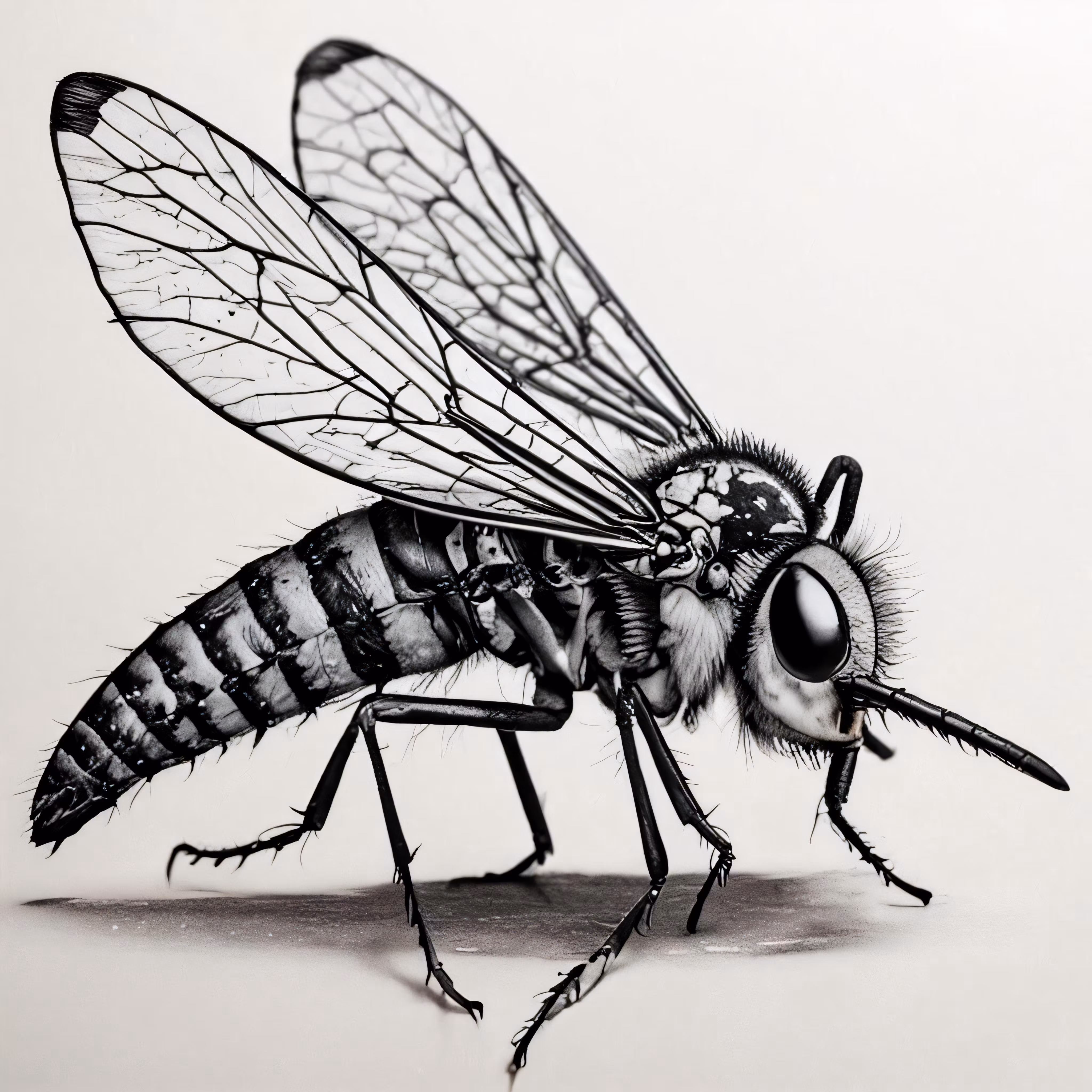 High resolution picture, free to use, drawing of a honey bee from a book about bees