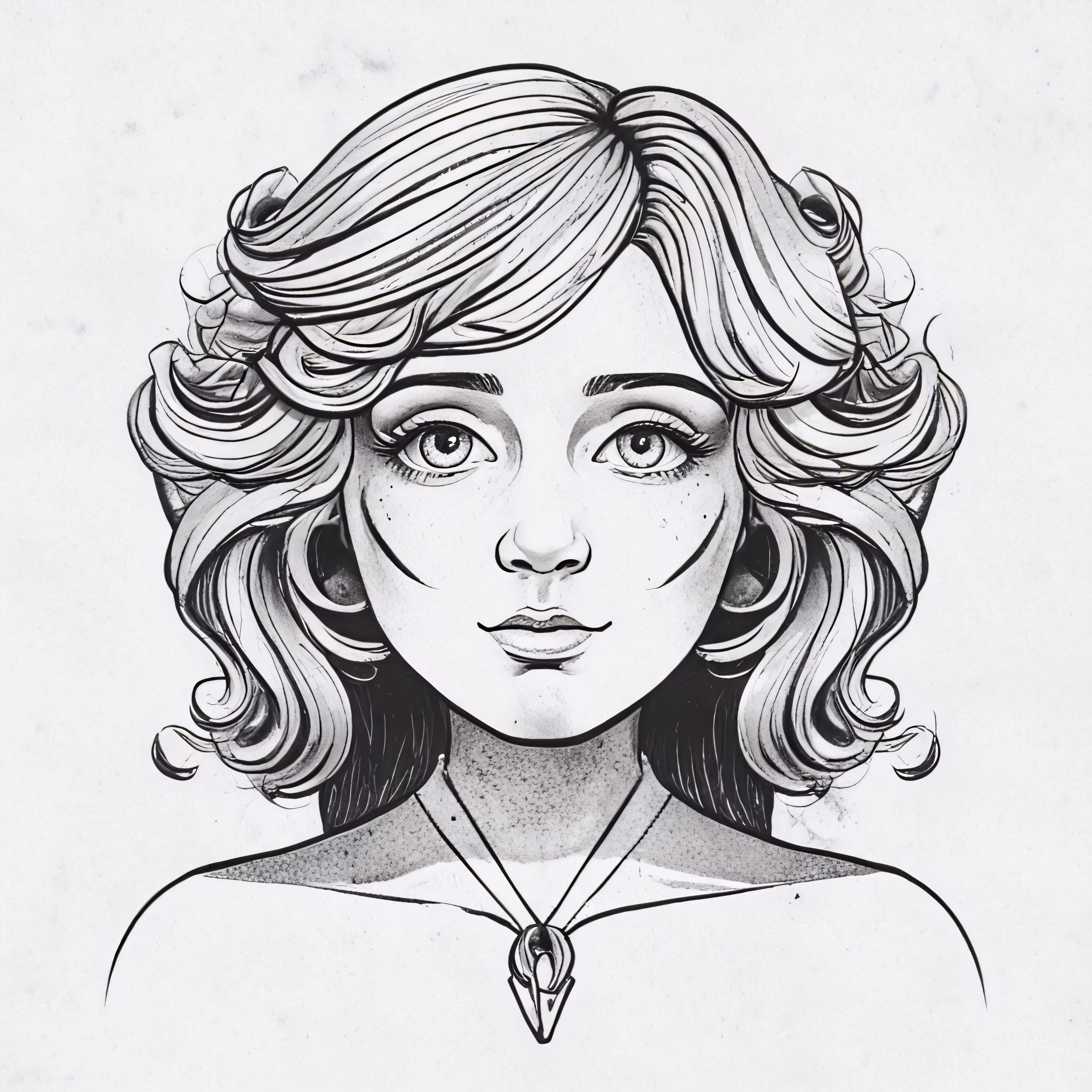 High resolution picture, free to use, drawing portrait of young woman with hair