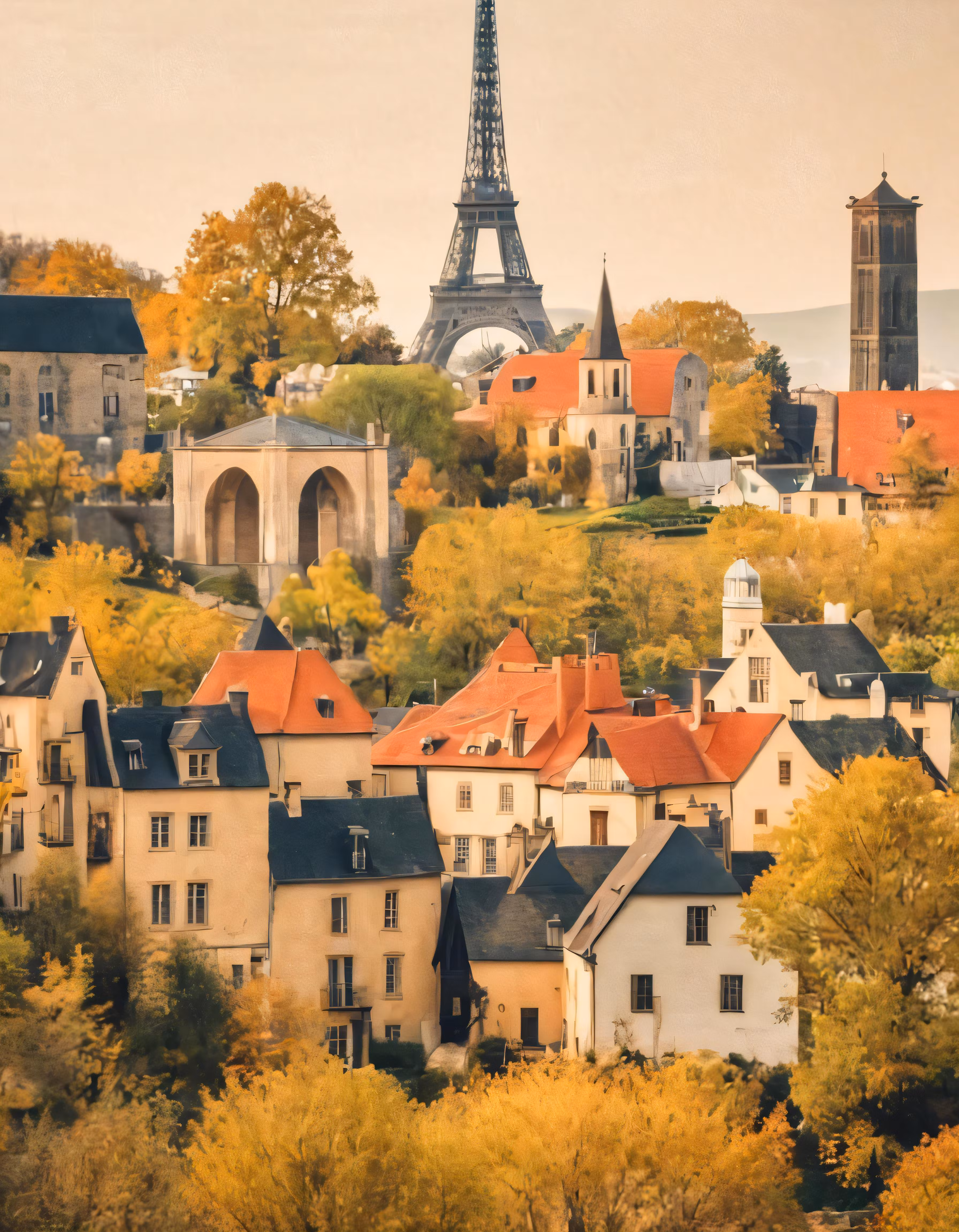 High resolution picture, free to use, eiffel tower in autumn in paris with autumn foliage