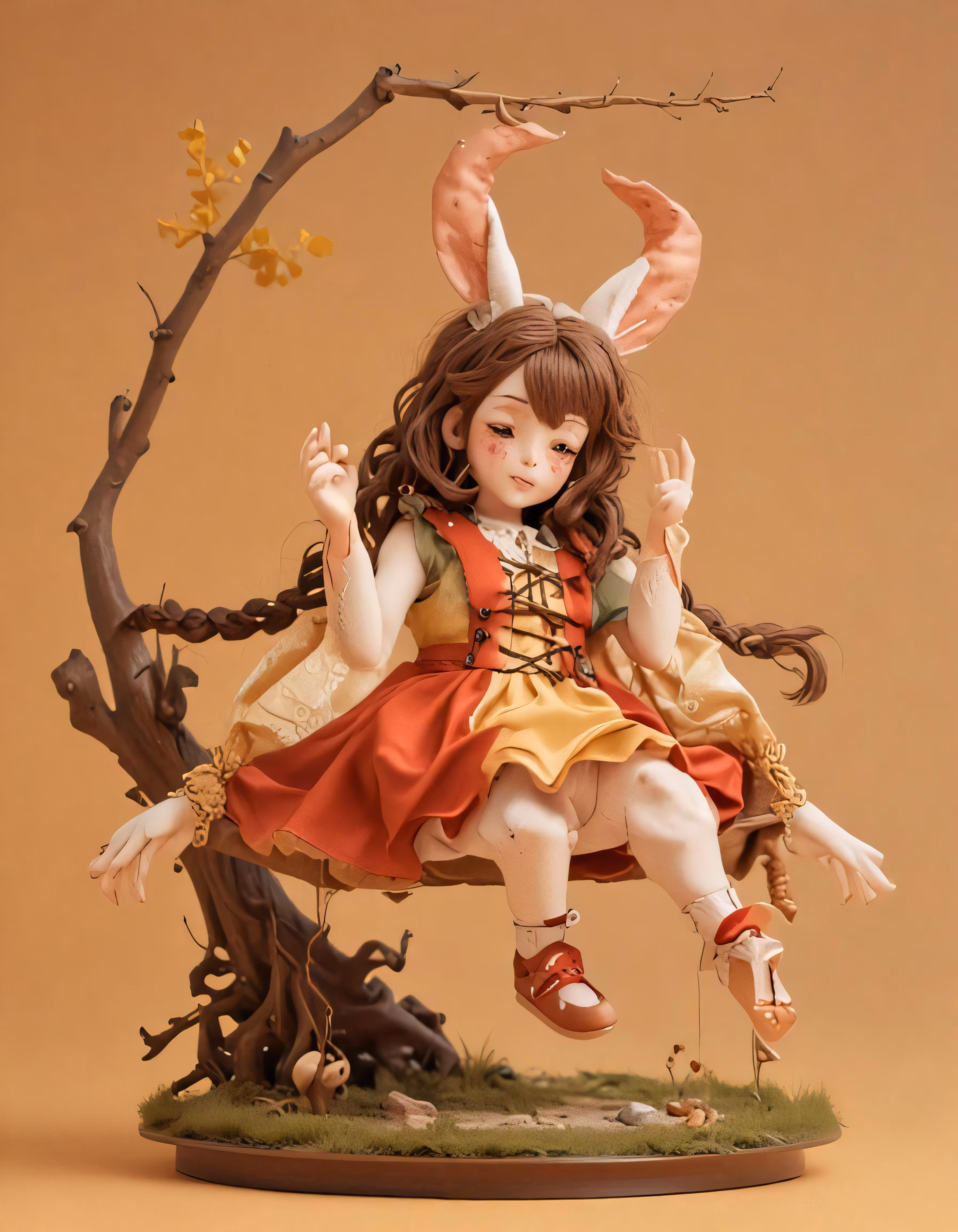 High resolution picture, free to use, figurine of a woman swinging on a tree