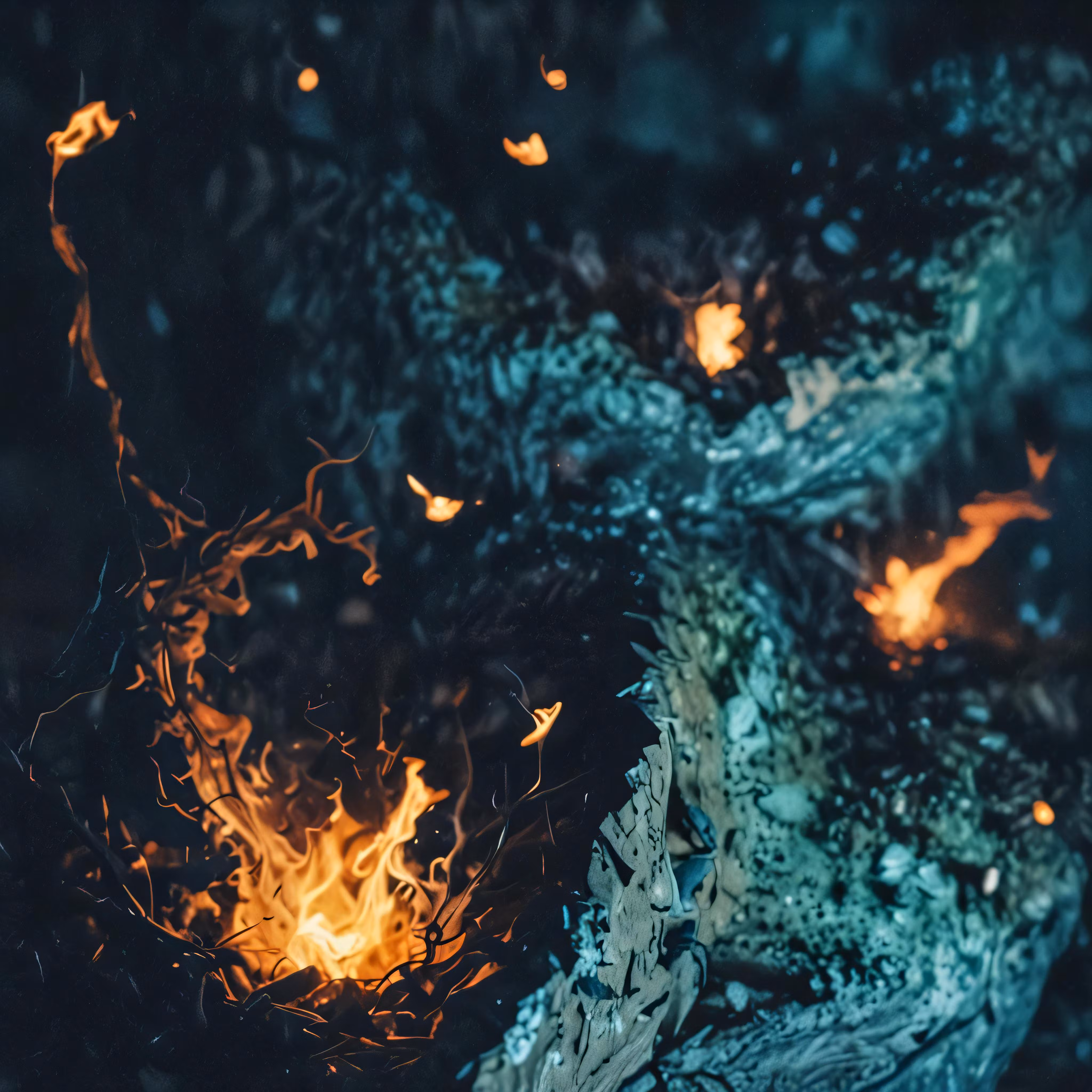 High resolution picture, free to use, fire and ice on the floor and a small piece of cake