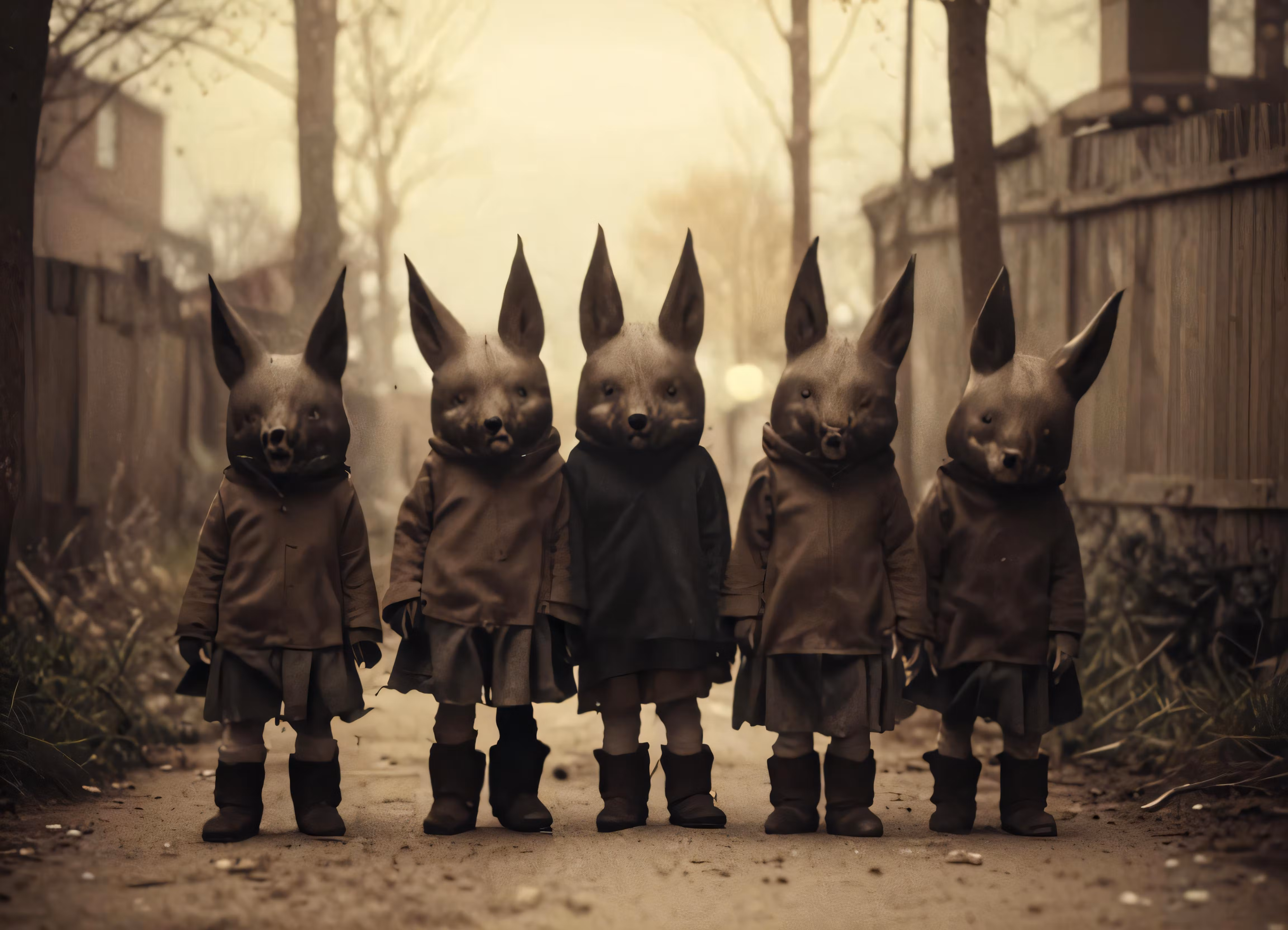 High resolution picture, free to use, four animal costumes of different ages, with little ones dressed as animals