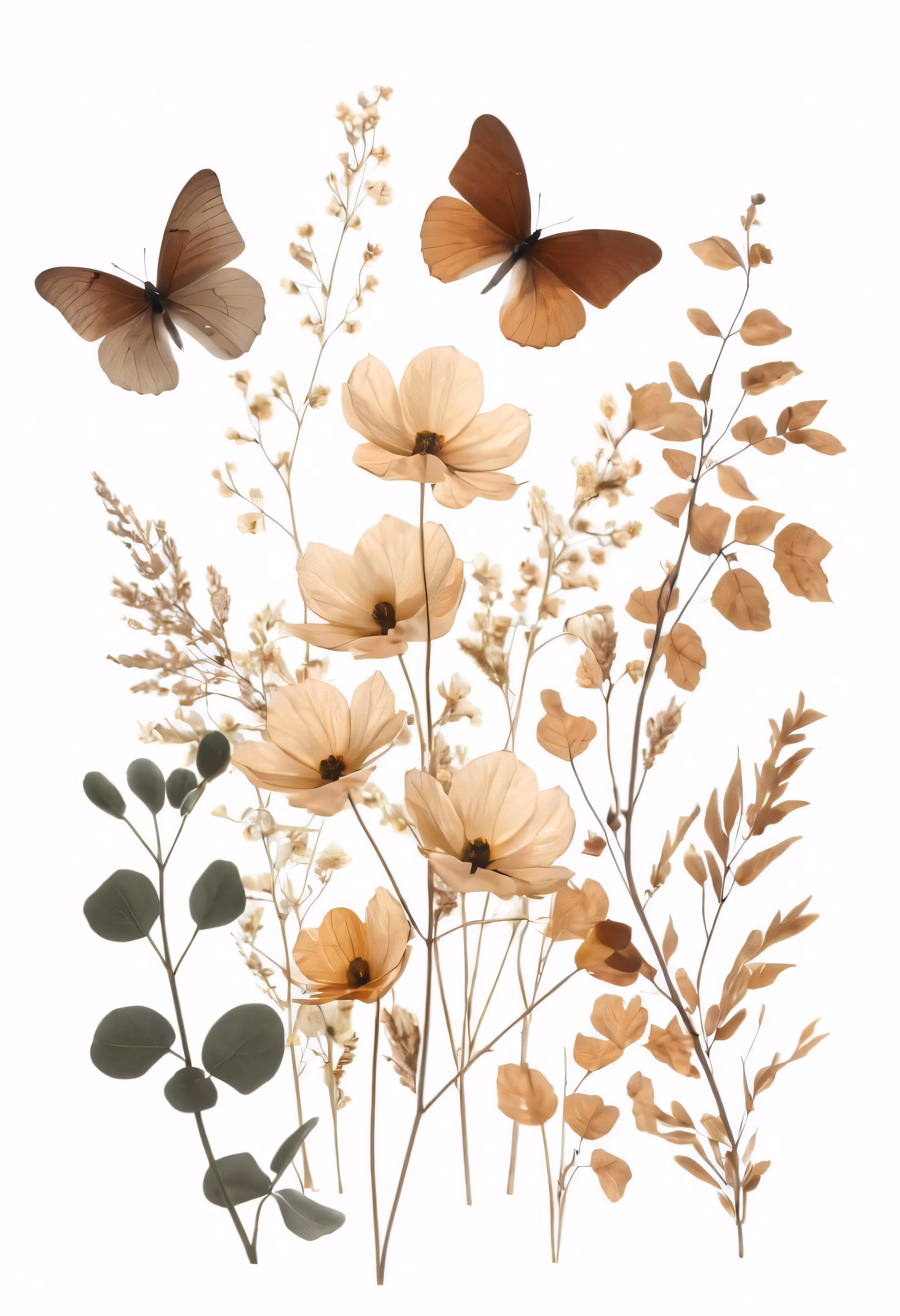 High resolution picture, free to use, four butterflies are flying and some flowers are in the middle