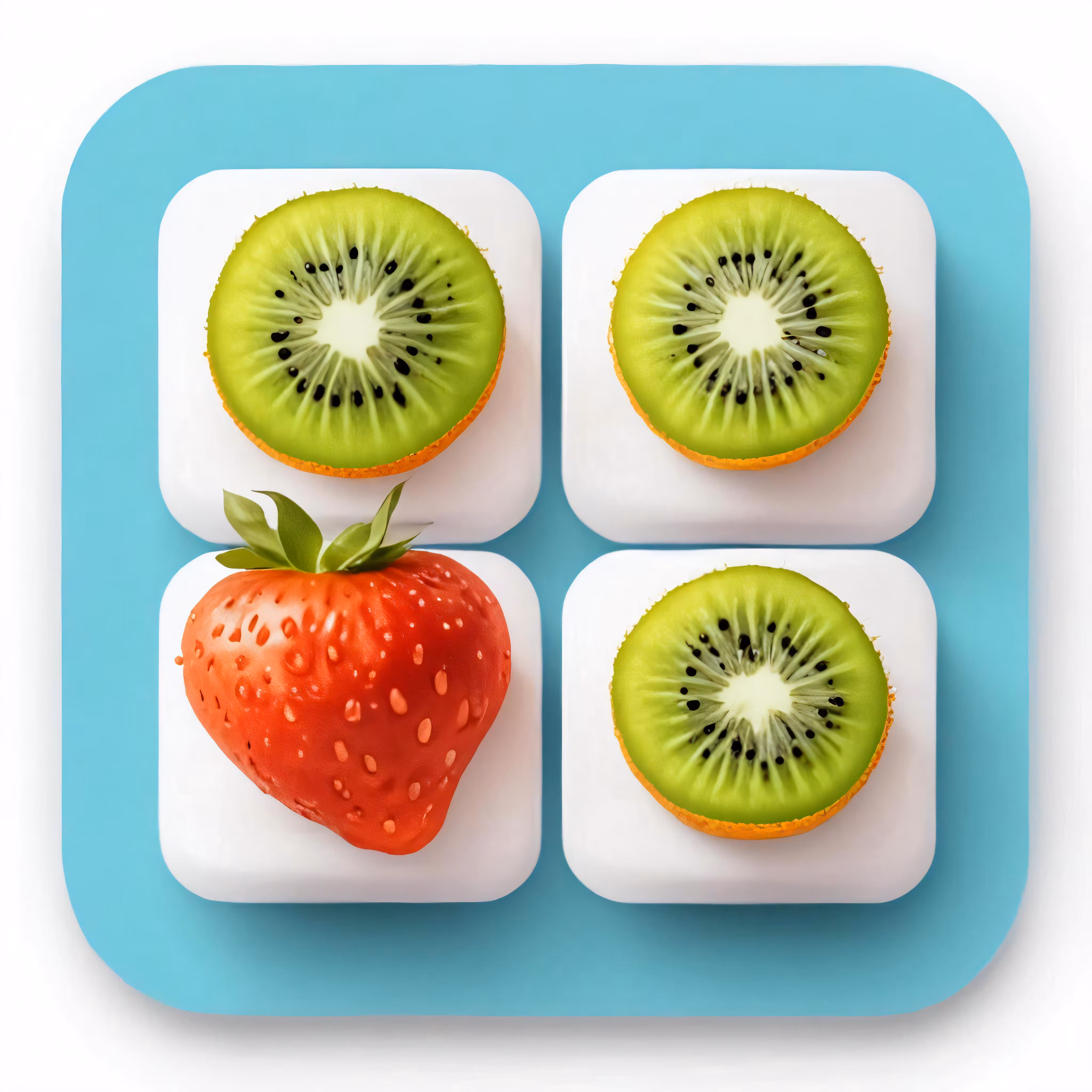 High resolution picture, free to use, four slices of kiwi are served with a strawberry