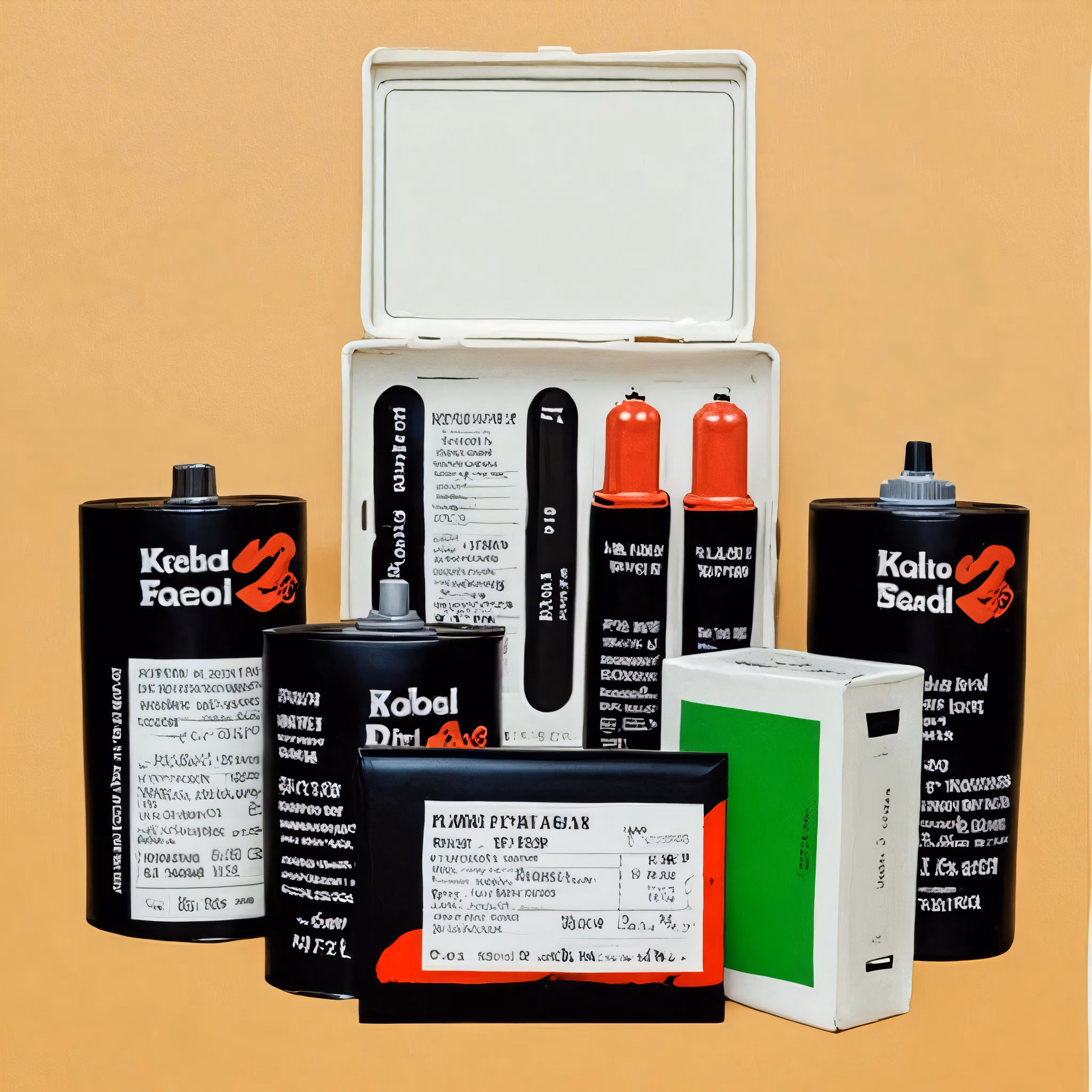 High resolution picture, free to use, four small batteries and some medicine are laid out together