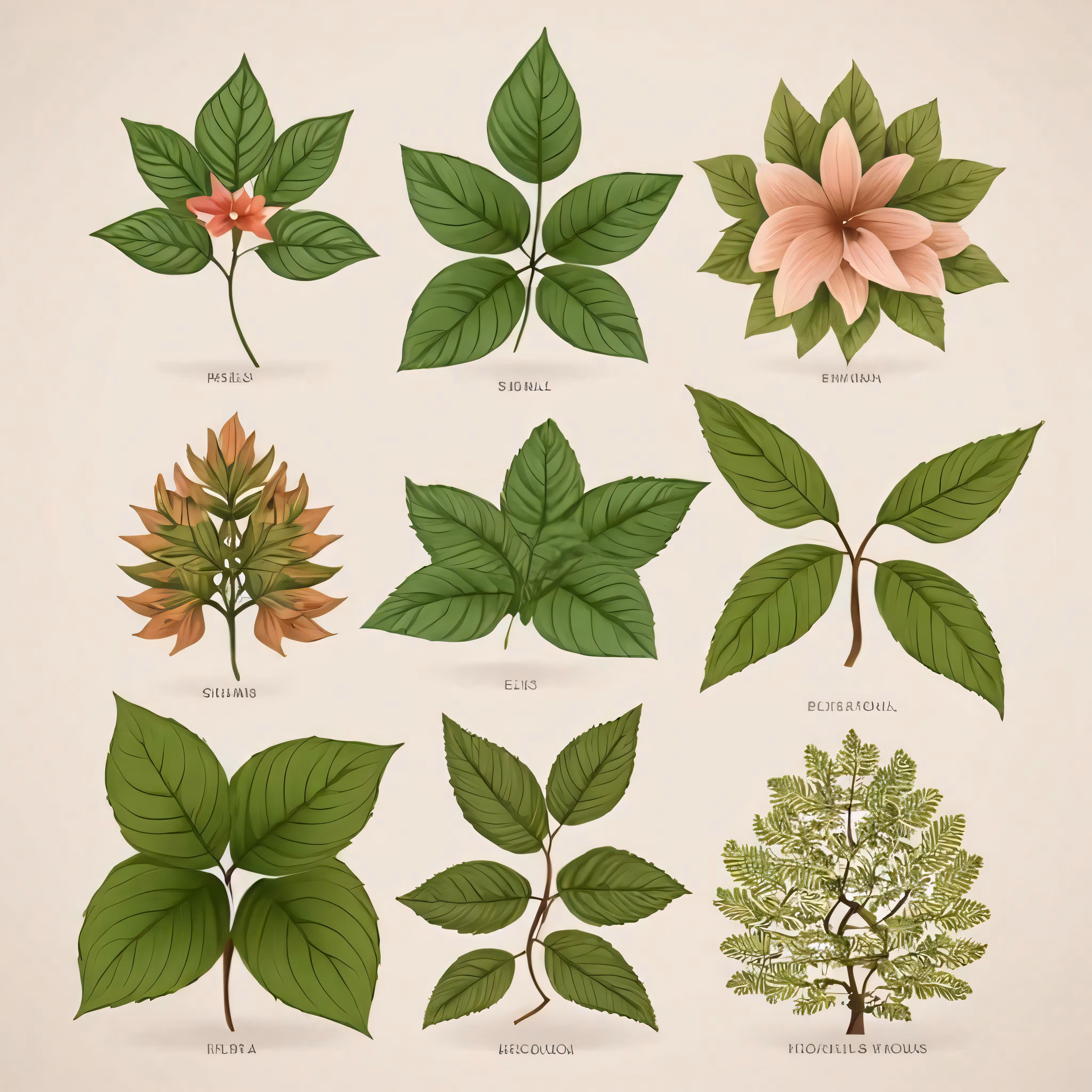 High resolution picture, free to use, four types of leaves with some plants growing out of them