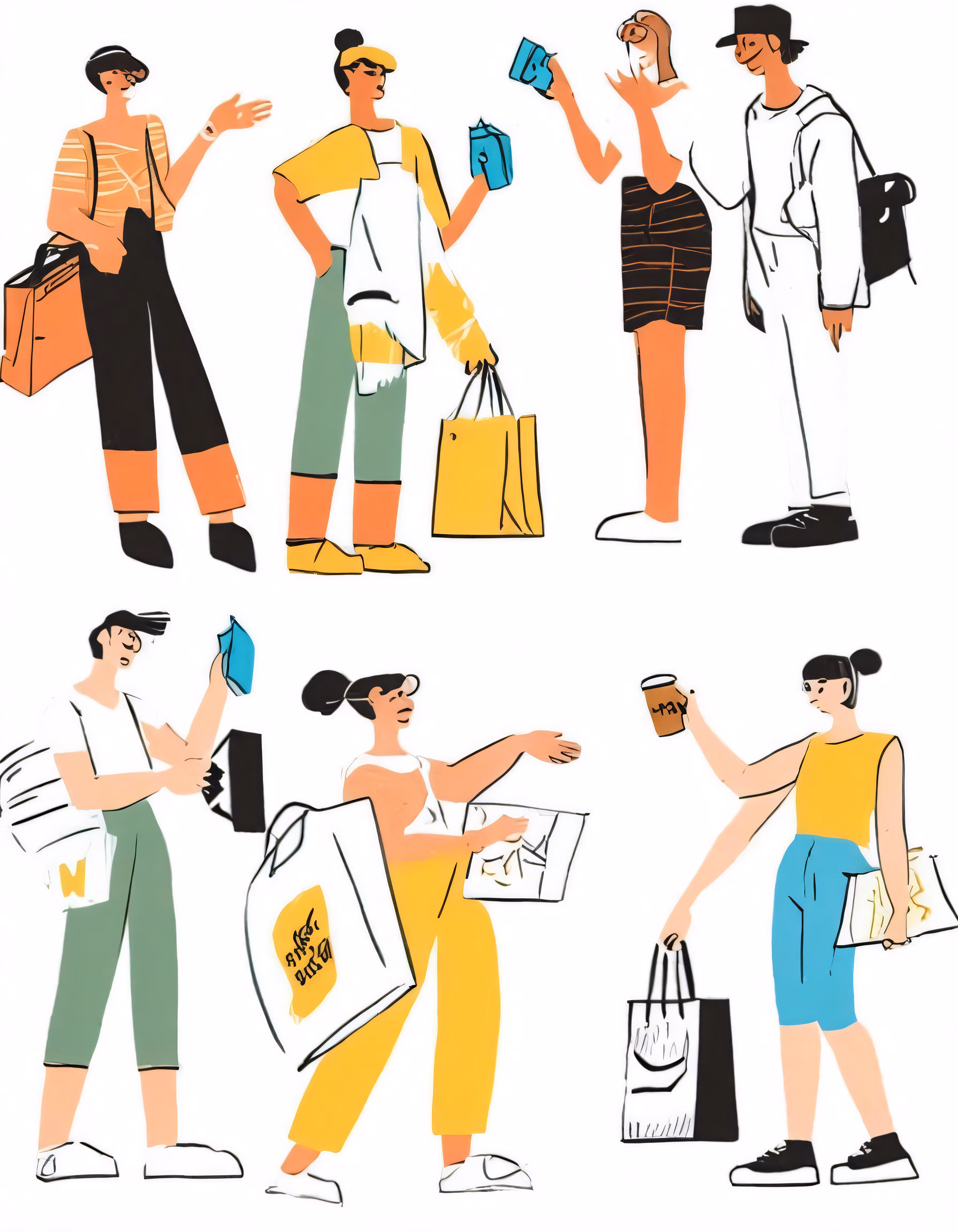High resolution picture, free to use, four woman standing in different outfits holding bags