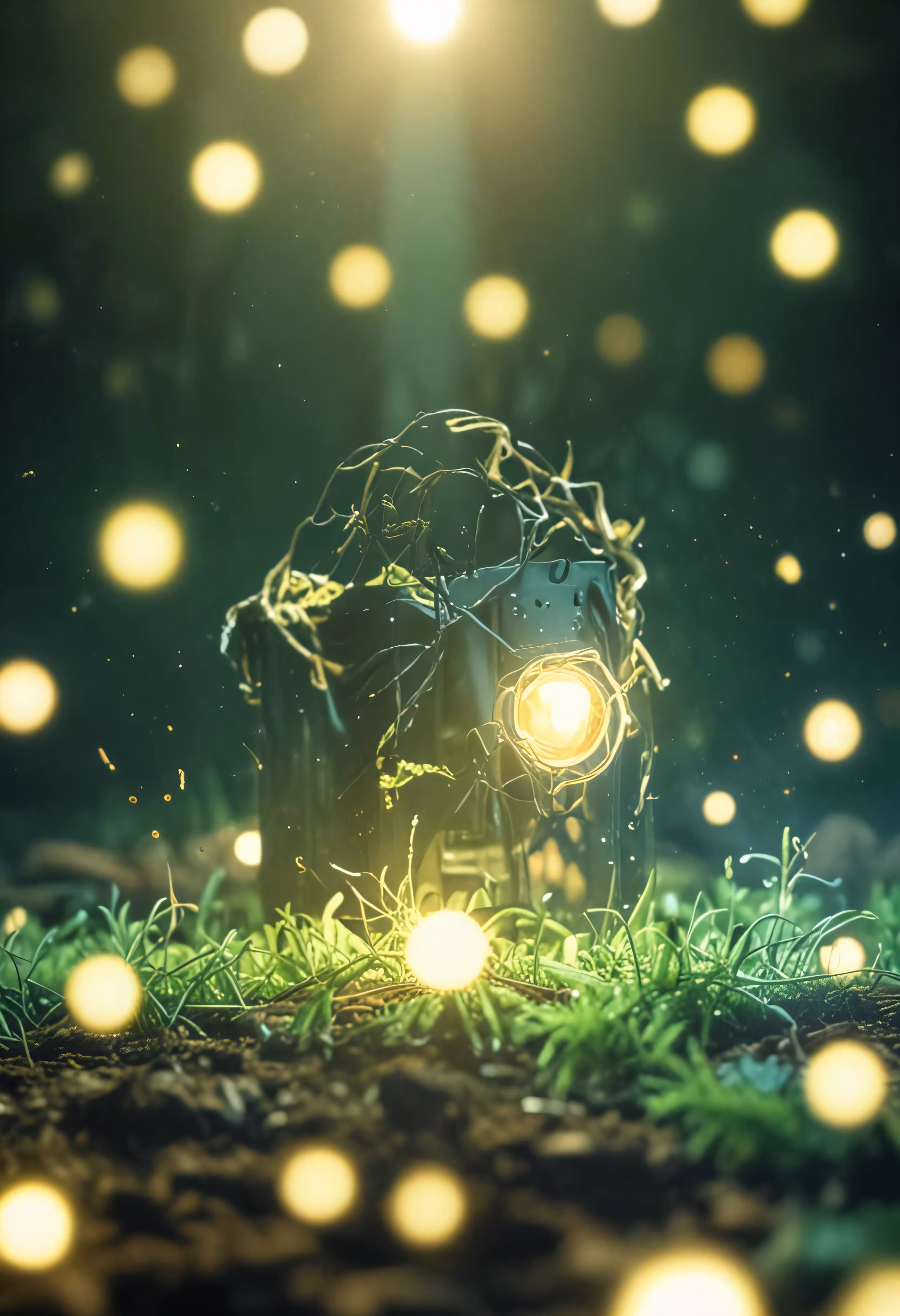 High resolution picture, free to use, glowing light up the sky above grass and rocks