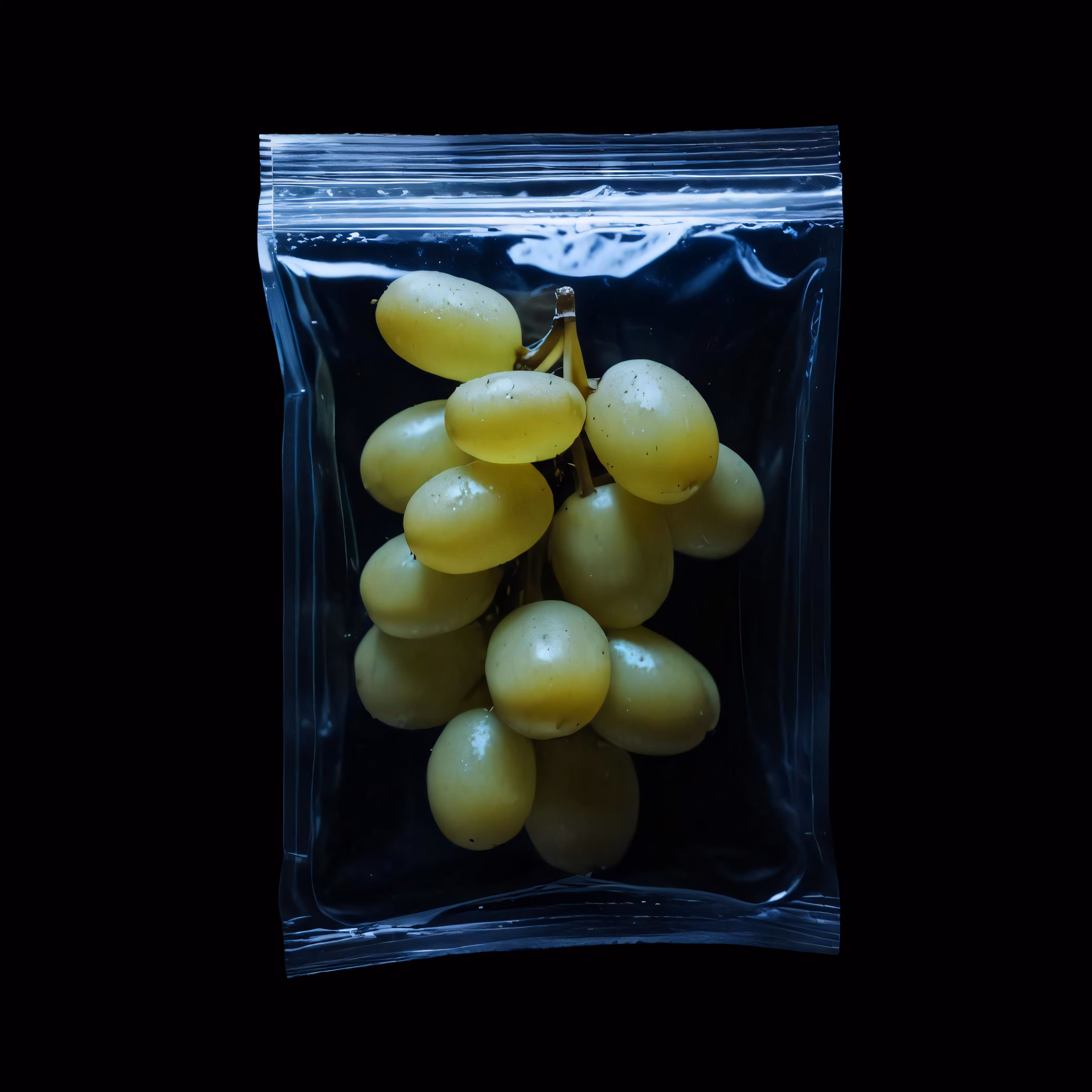High resolution picture, free to use, grapes sitting inside of a package on top of a black surface