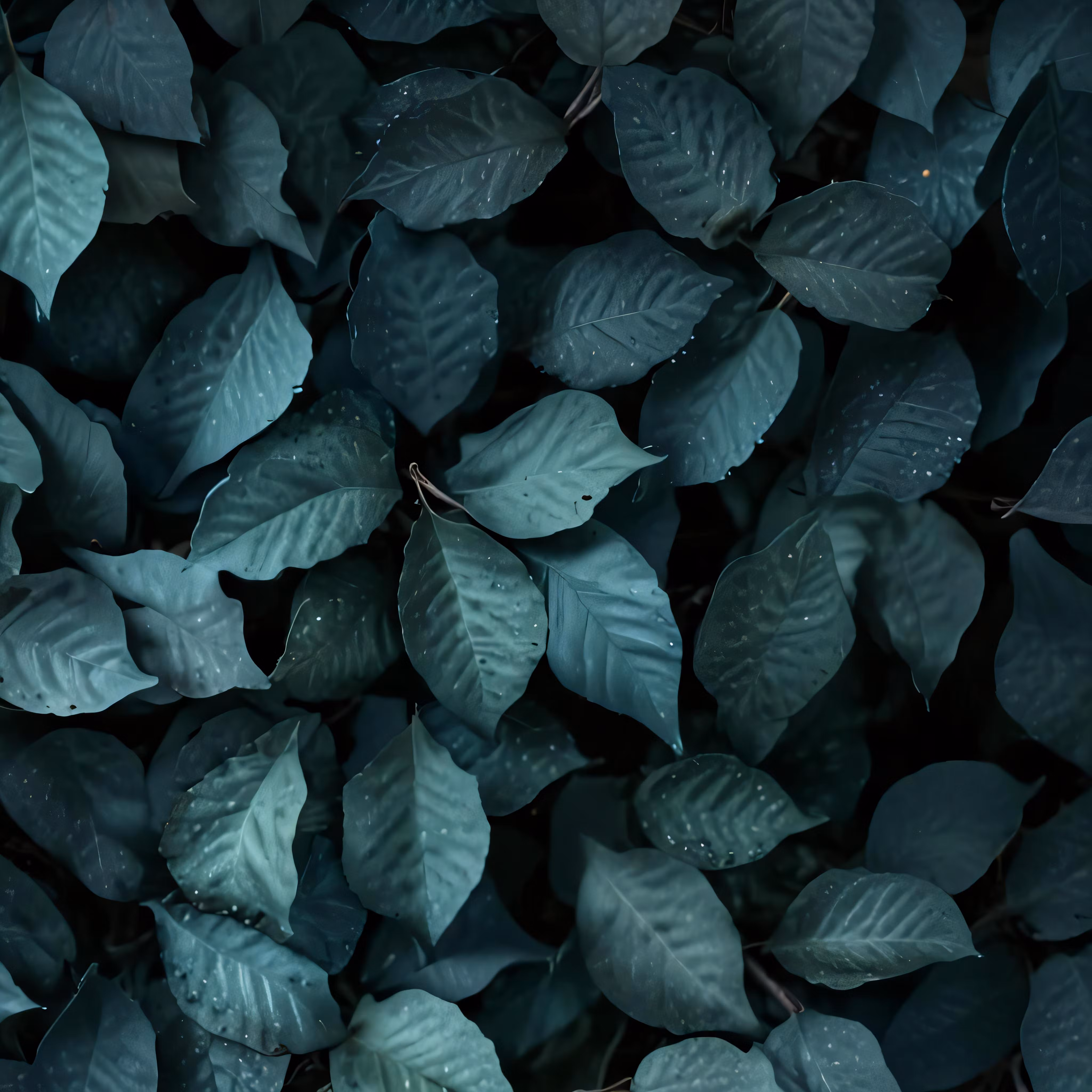 High resolution picture, free to use, green leaves in the dark with drops of rain