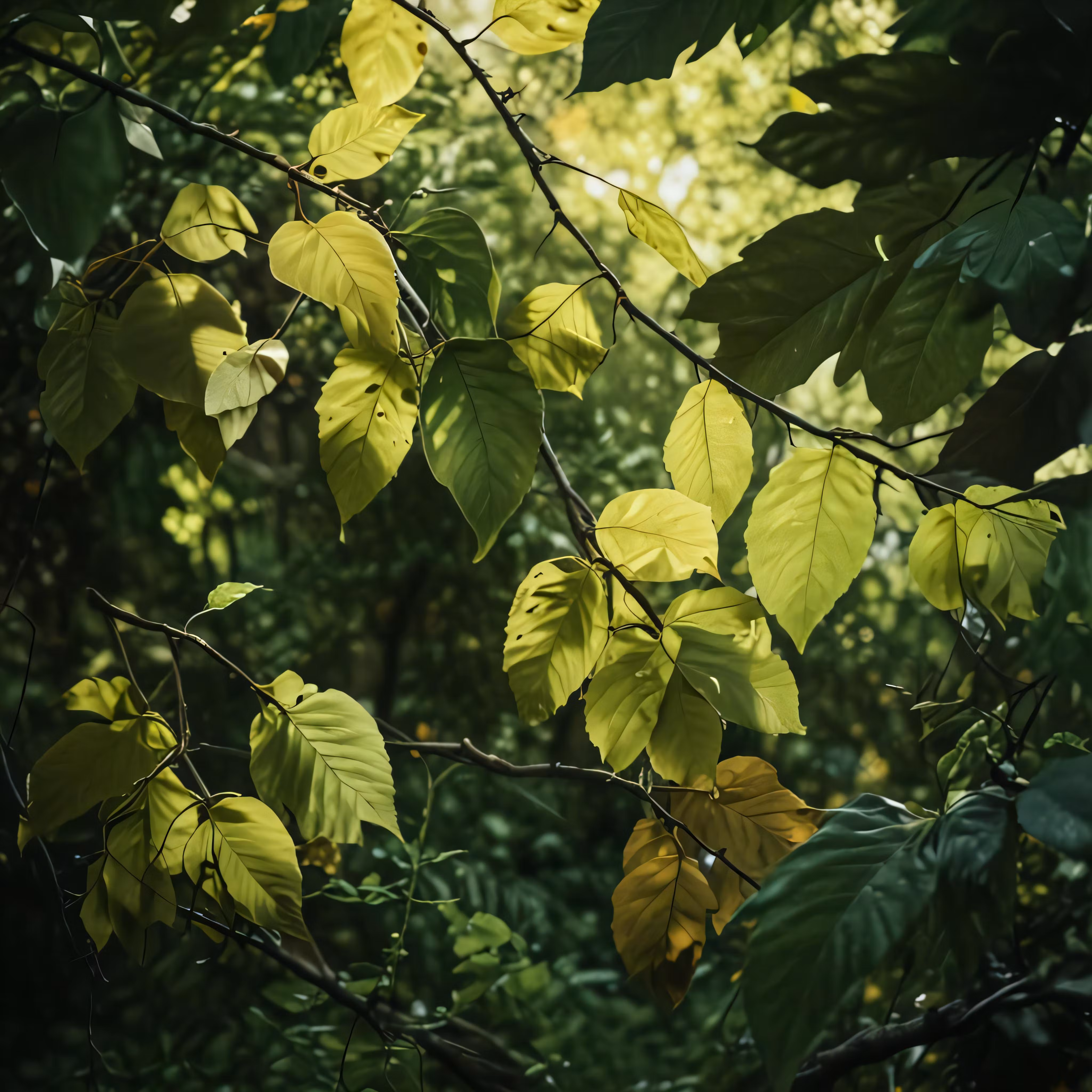 High resolution picture, free to use, green leaves of the tree are changing colors