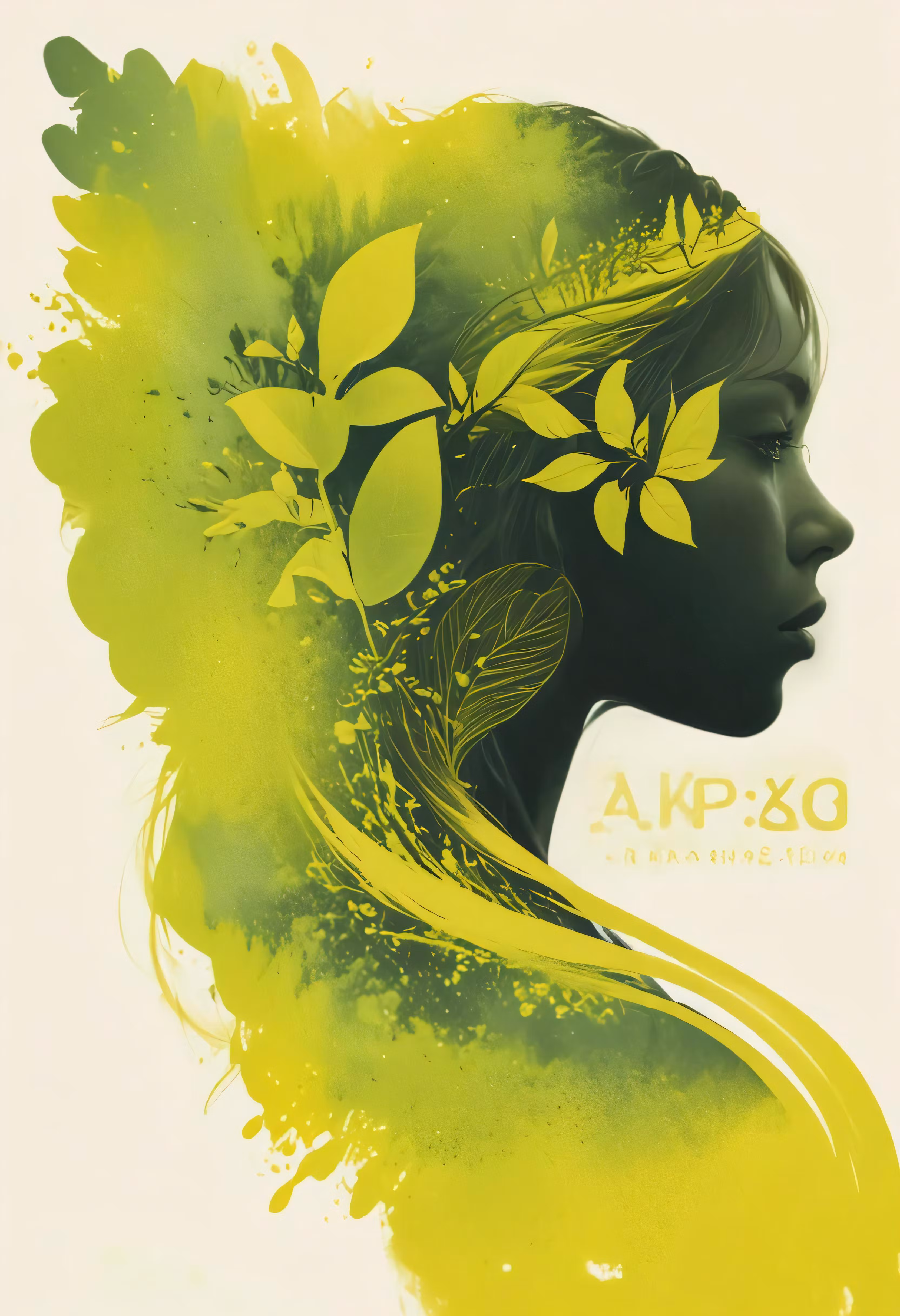 High resolution picture, free to use, green profile of a woman with foliage and leaves in her hair