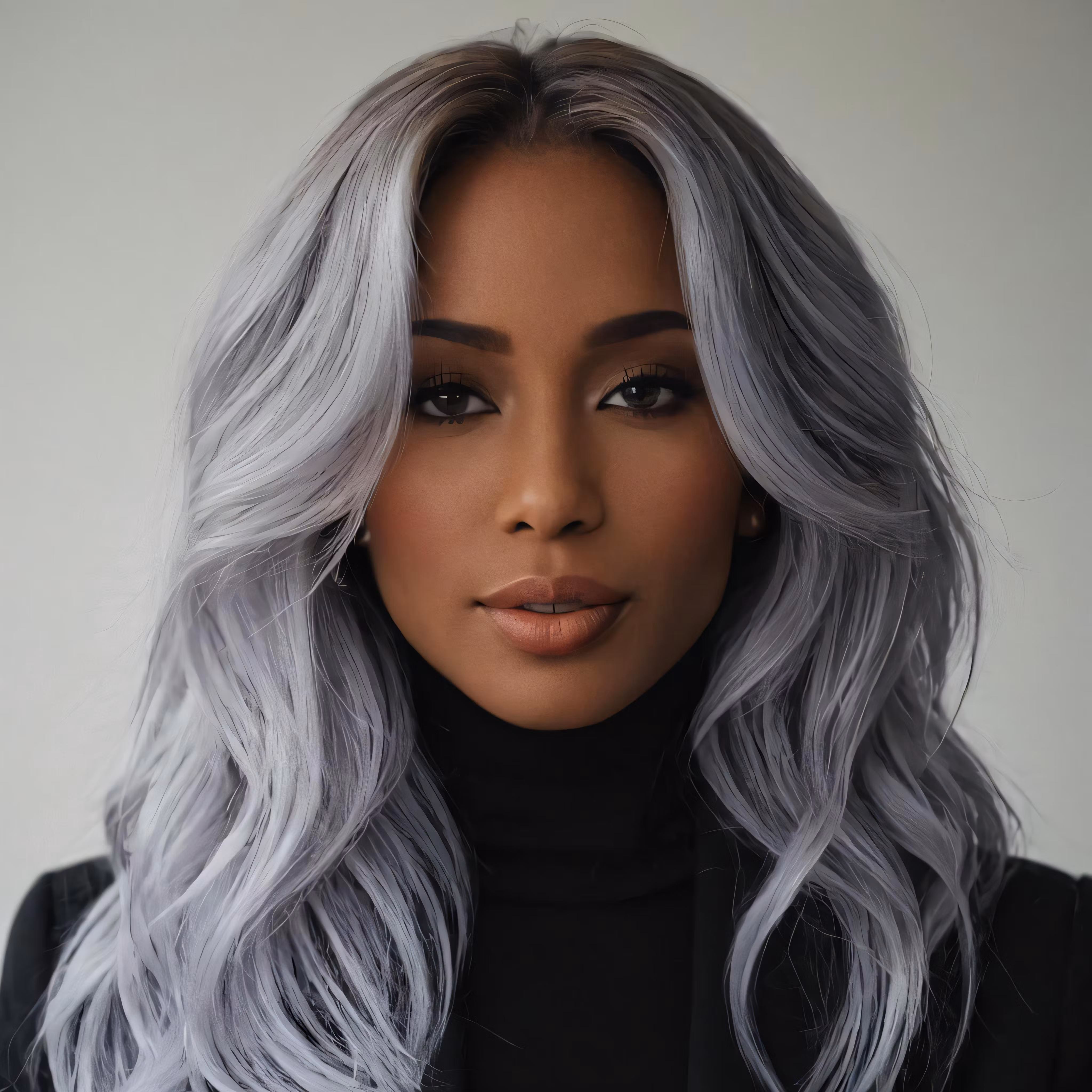 High resolution picture, free to use, grey haired model wearing a dark turtle neck sweater