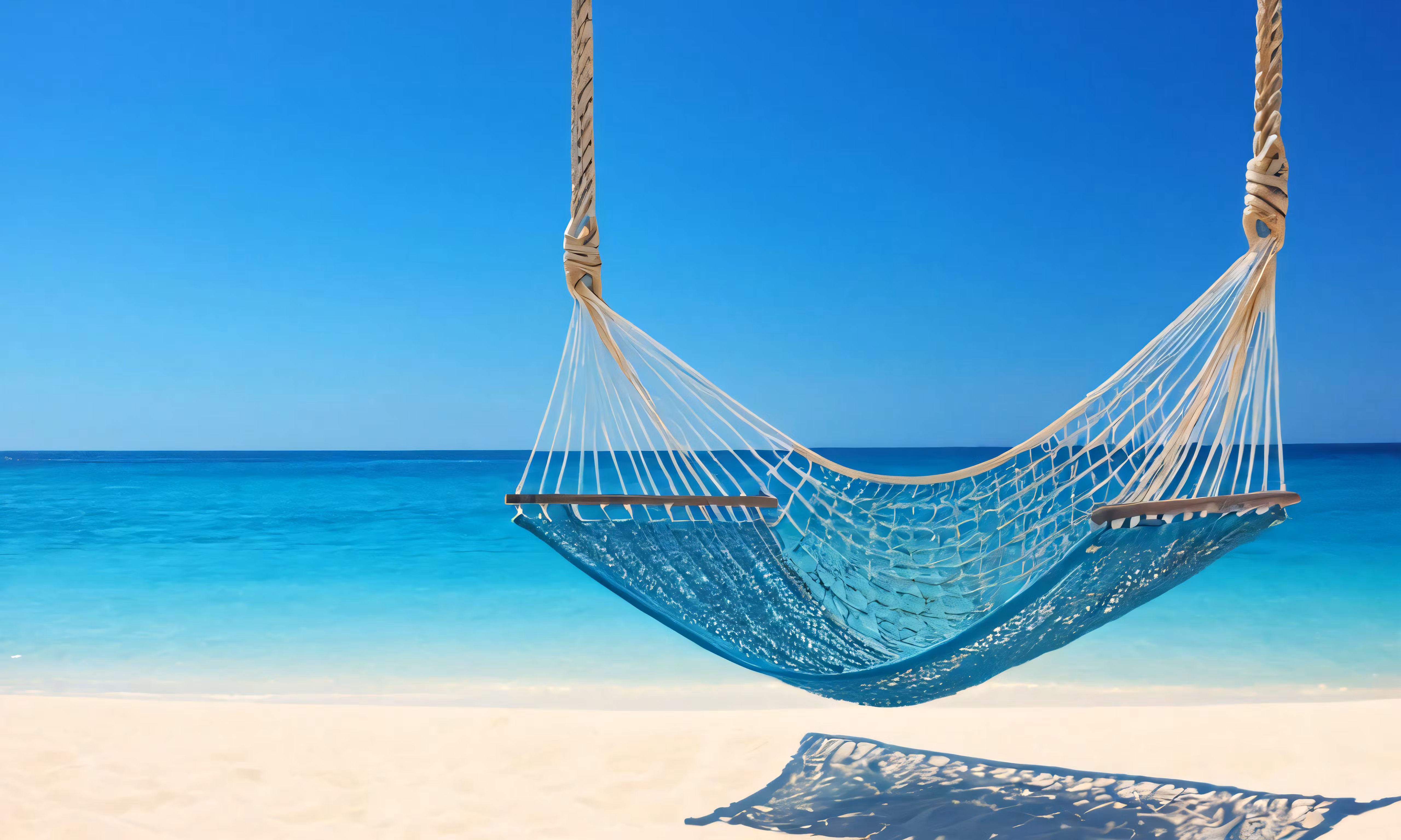 High resolution picture, free to use, hammock hanging over sandy beach on clear day