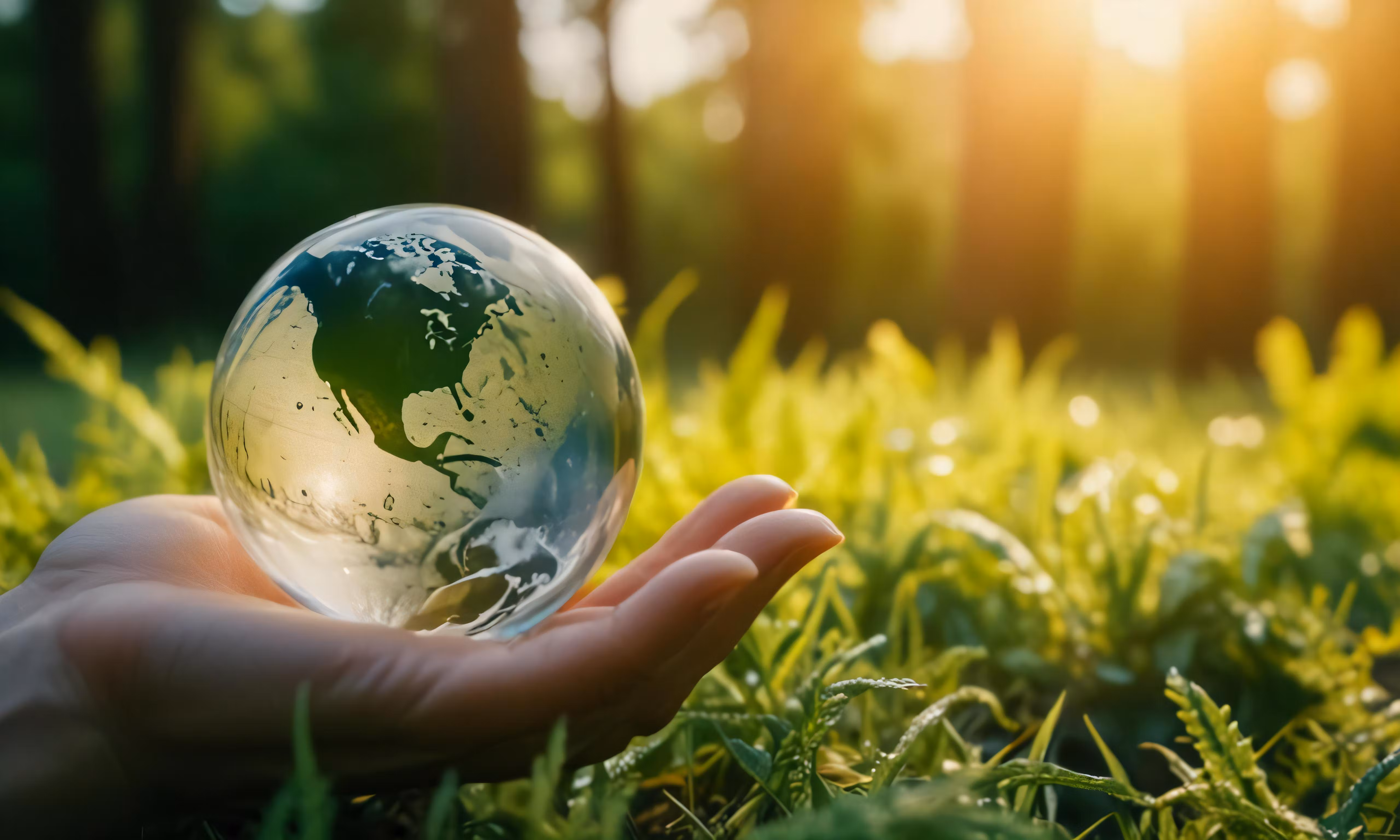 High resolution picture, free to use, hand holding small globe on a grassy field