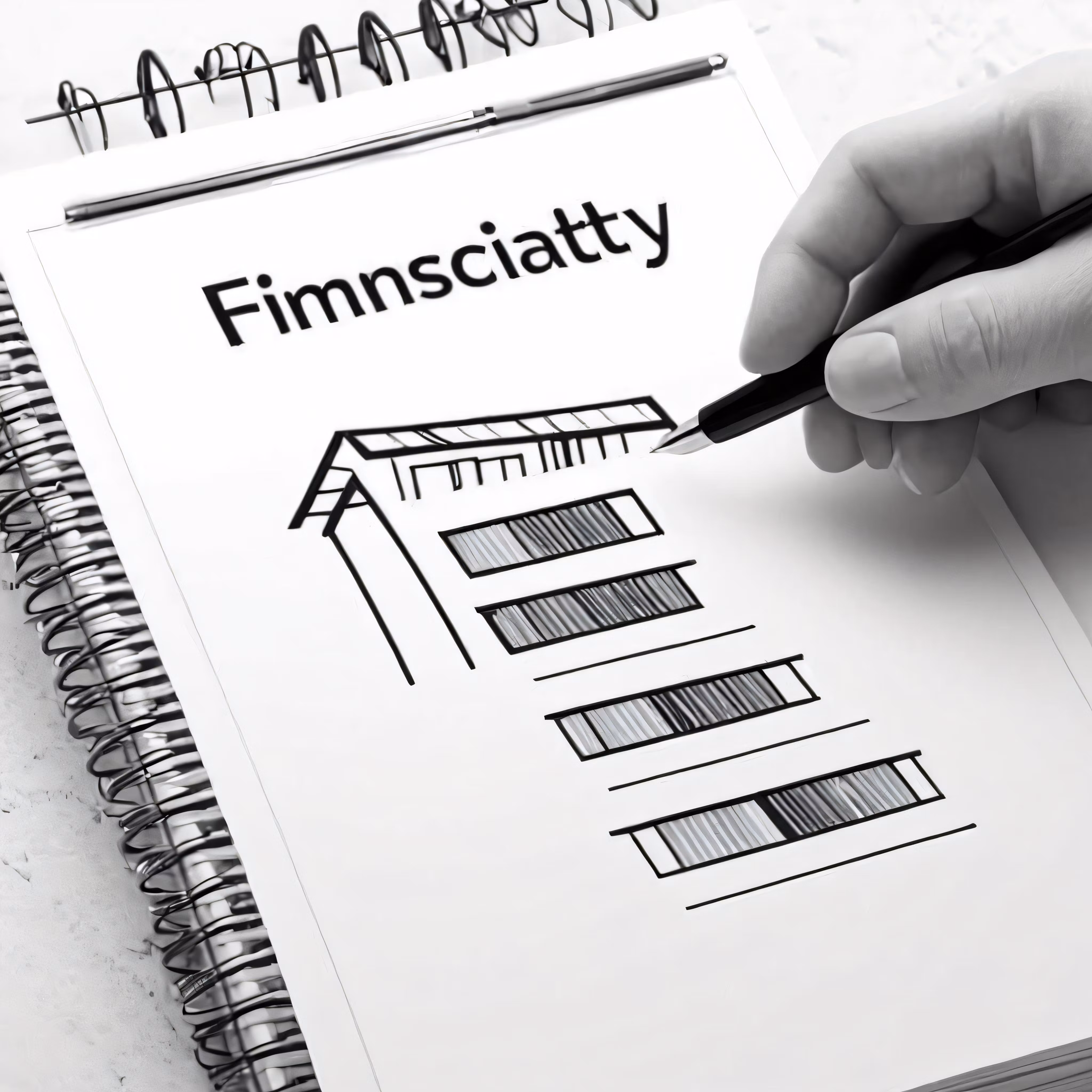High resolution picture, free to use, hand with pen and notebook written on white sheet of paper with word finmscitty