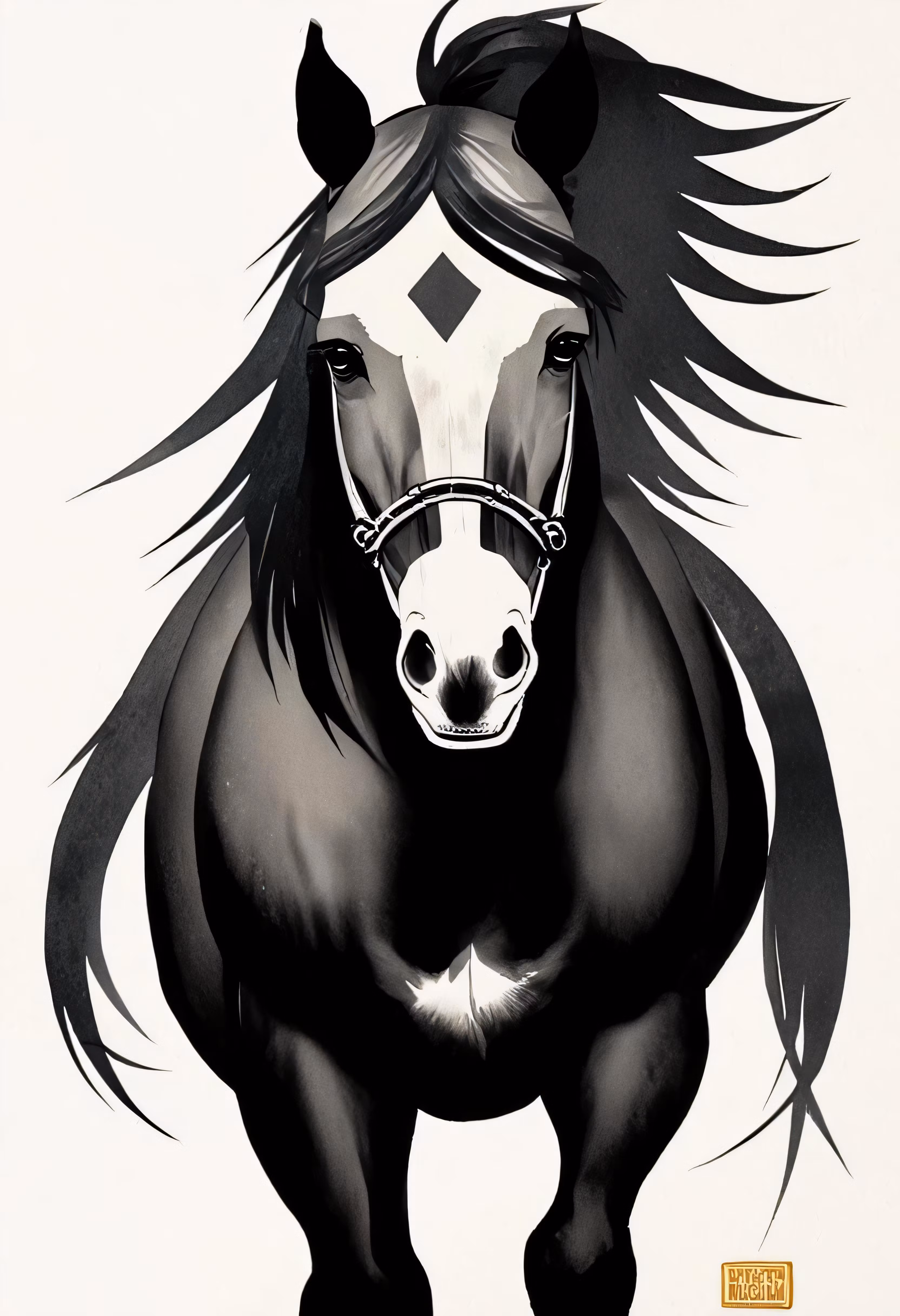 High resolution picture, free to use, horse running across white background, viewed from below