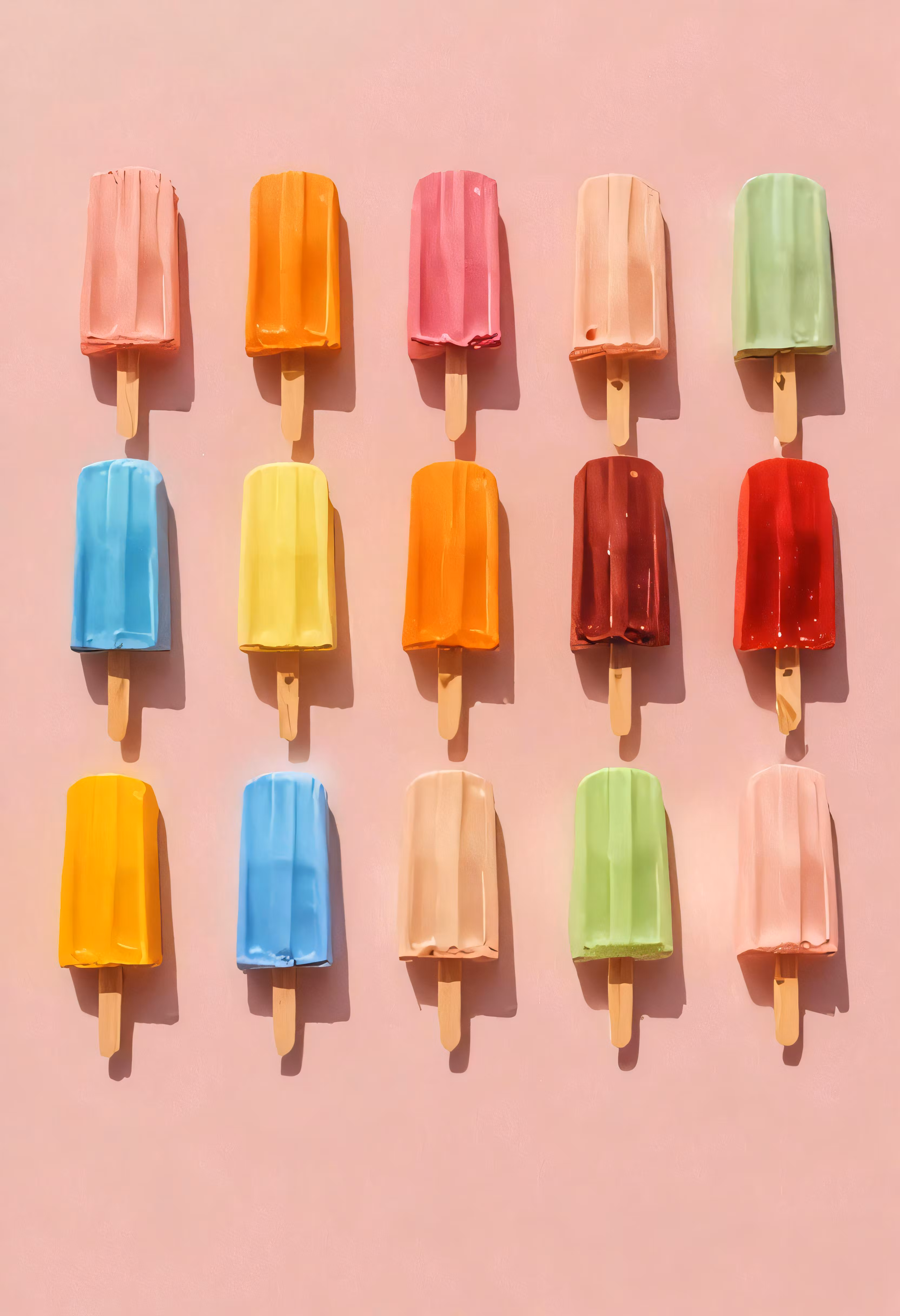 High resolution picture, free to use, ice cream pops in color are displayed in rows