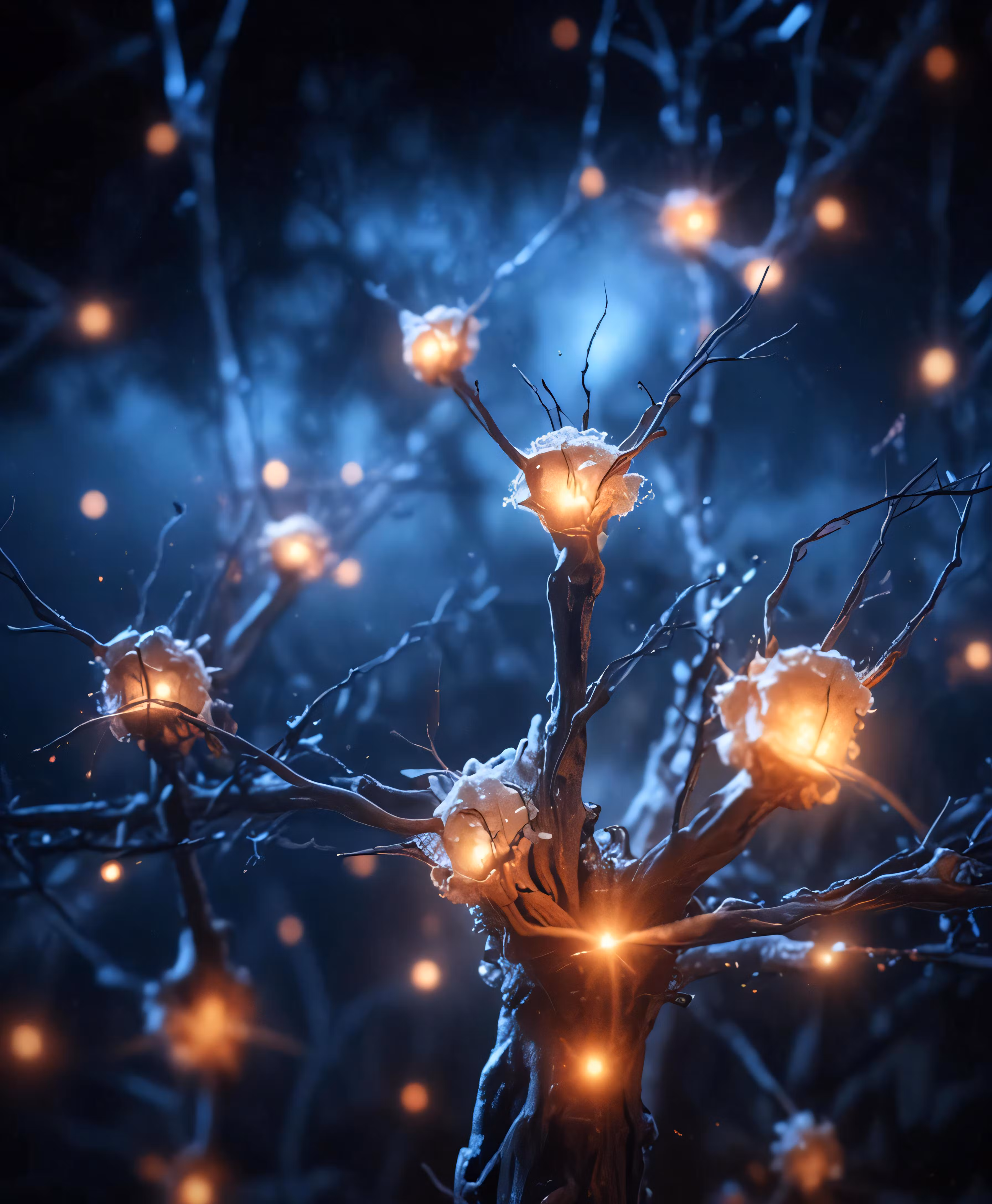High resolution picture, free to use, illuminated branches and lamps in the night