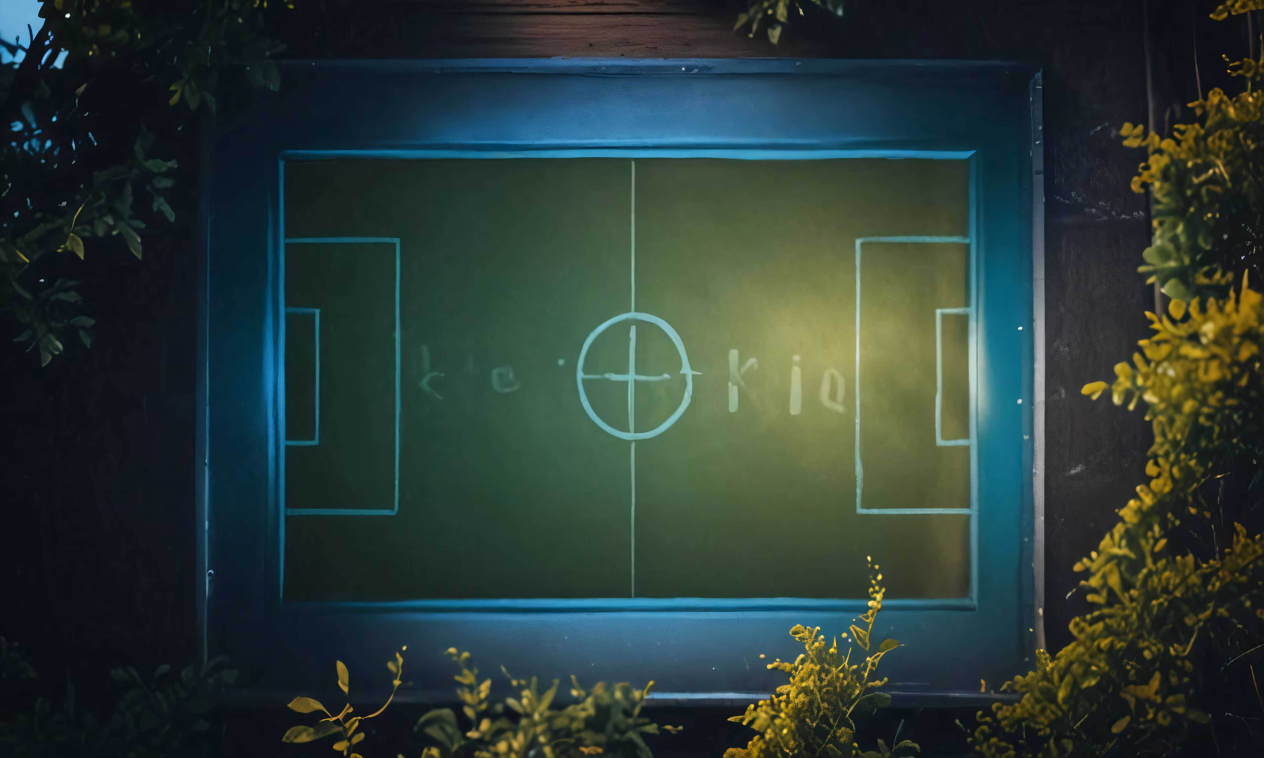High resolution picture, free to use, illuminated image of soccer field projected on wall at night