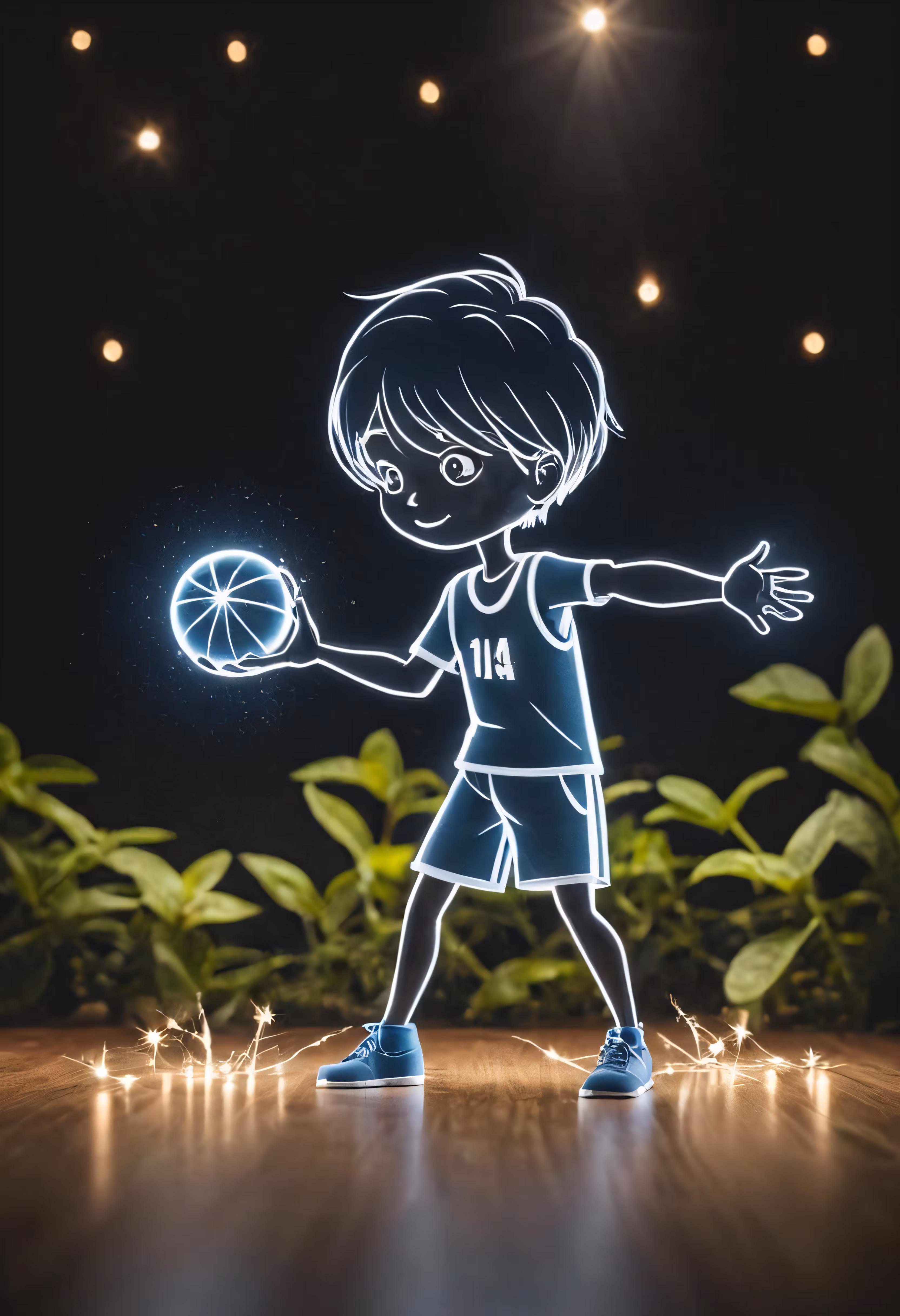 High resolution picture, free to use, illuminated model of young boy on wooden floor