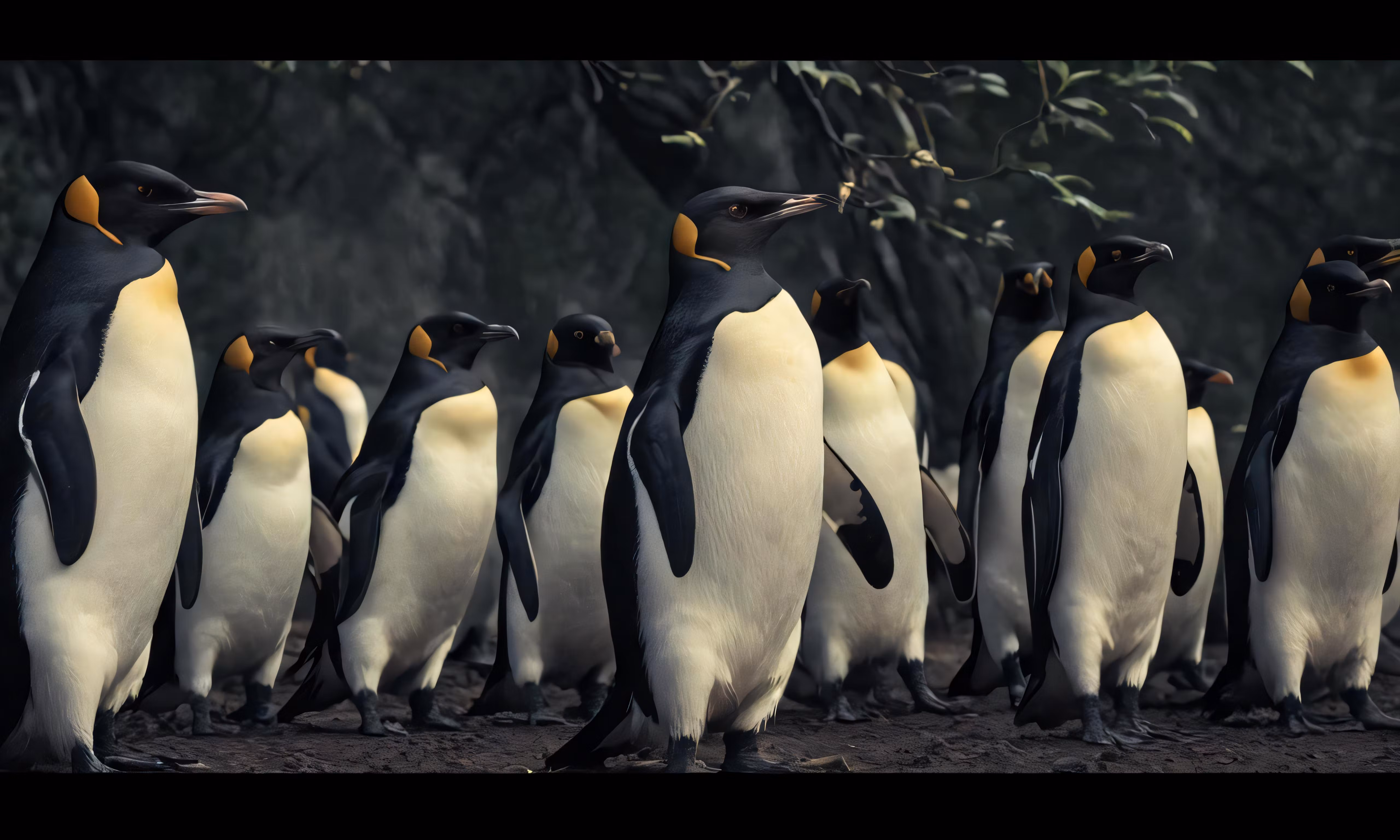 High resolution picture, free to use, large group of penguins all lined up in front of each other