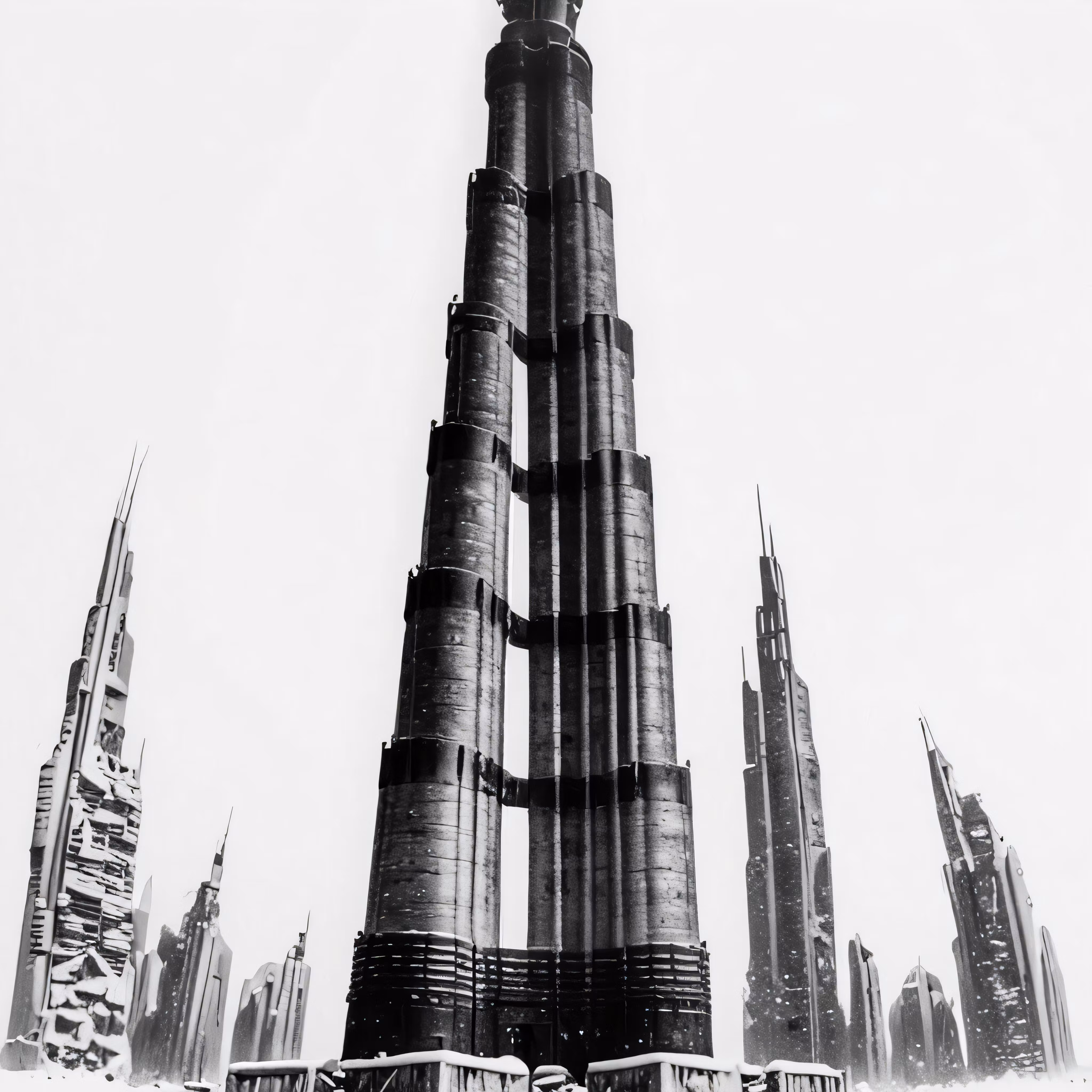 High resolution picture, free to use, large industrial towers towering from the sky near a bus
