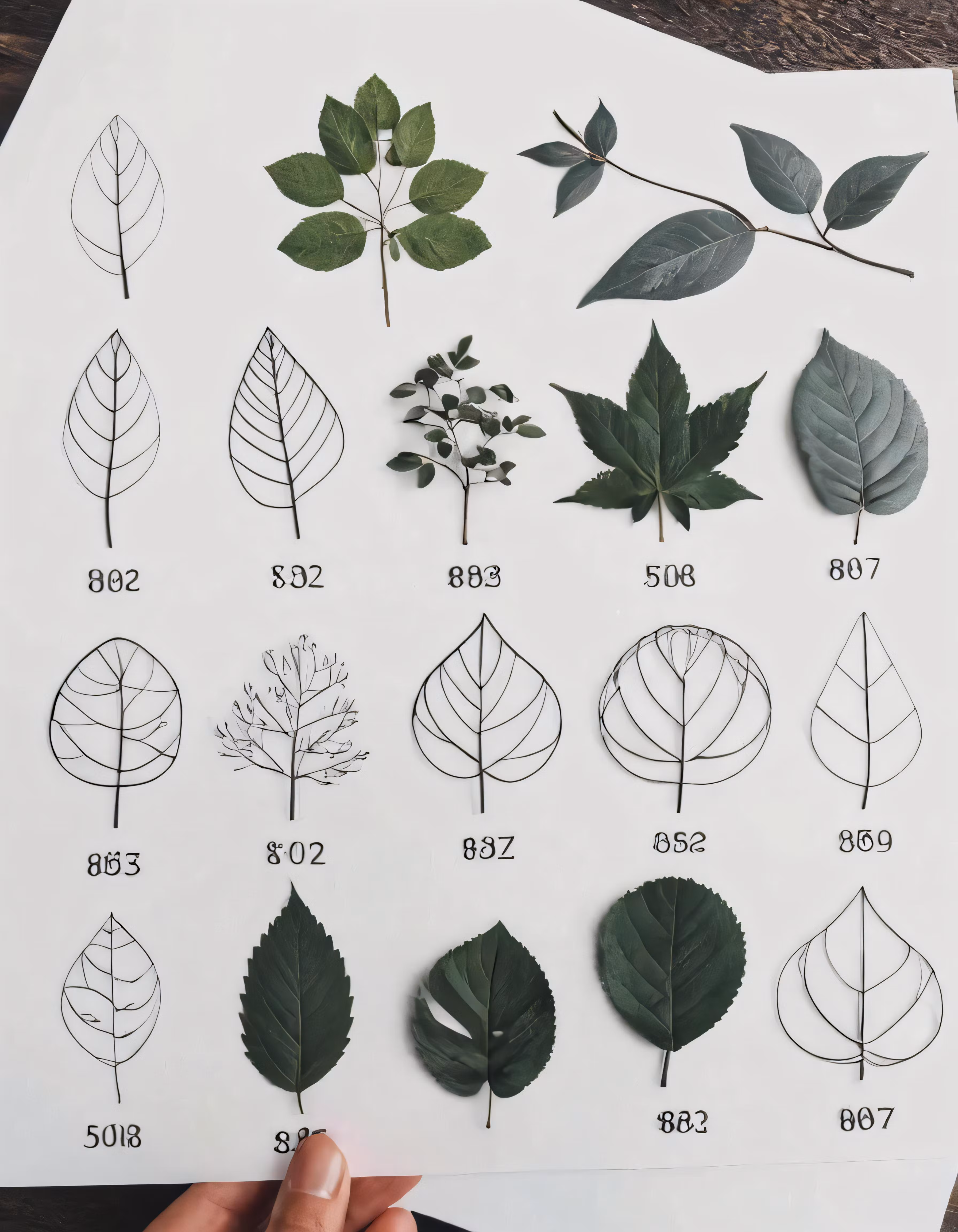 High resolution picture, free to use, leaves are shown in black and white on paper
