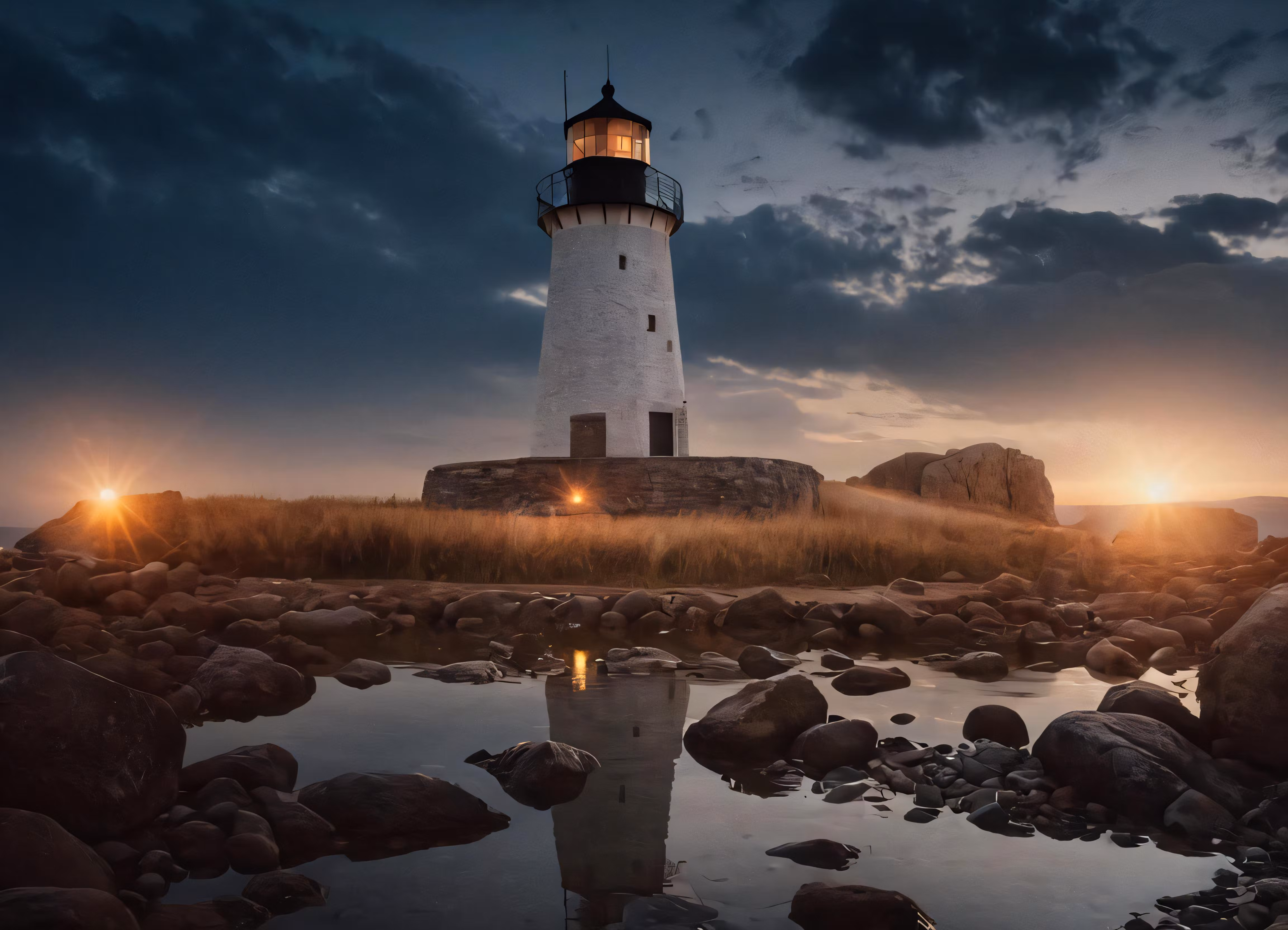 High resolution picture, free to use, light house next to ocean on cloudy day