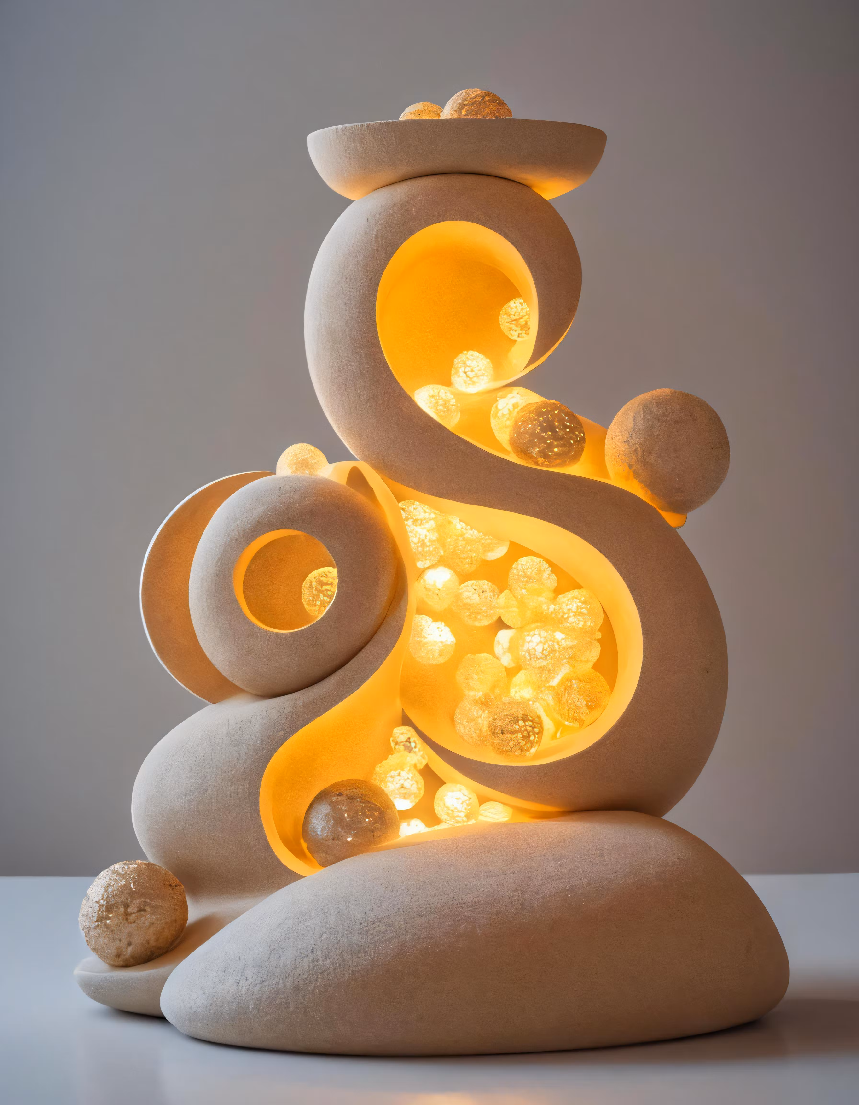 High resolution picture, free to use, light sculpture is displayed on a white table