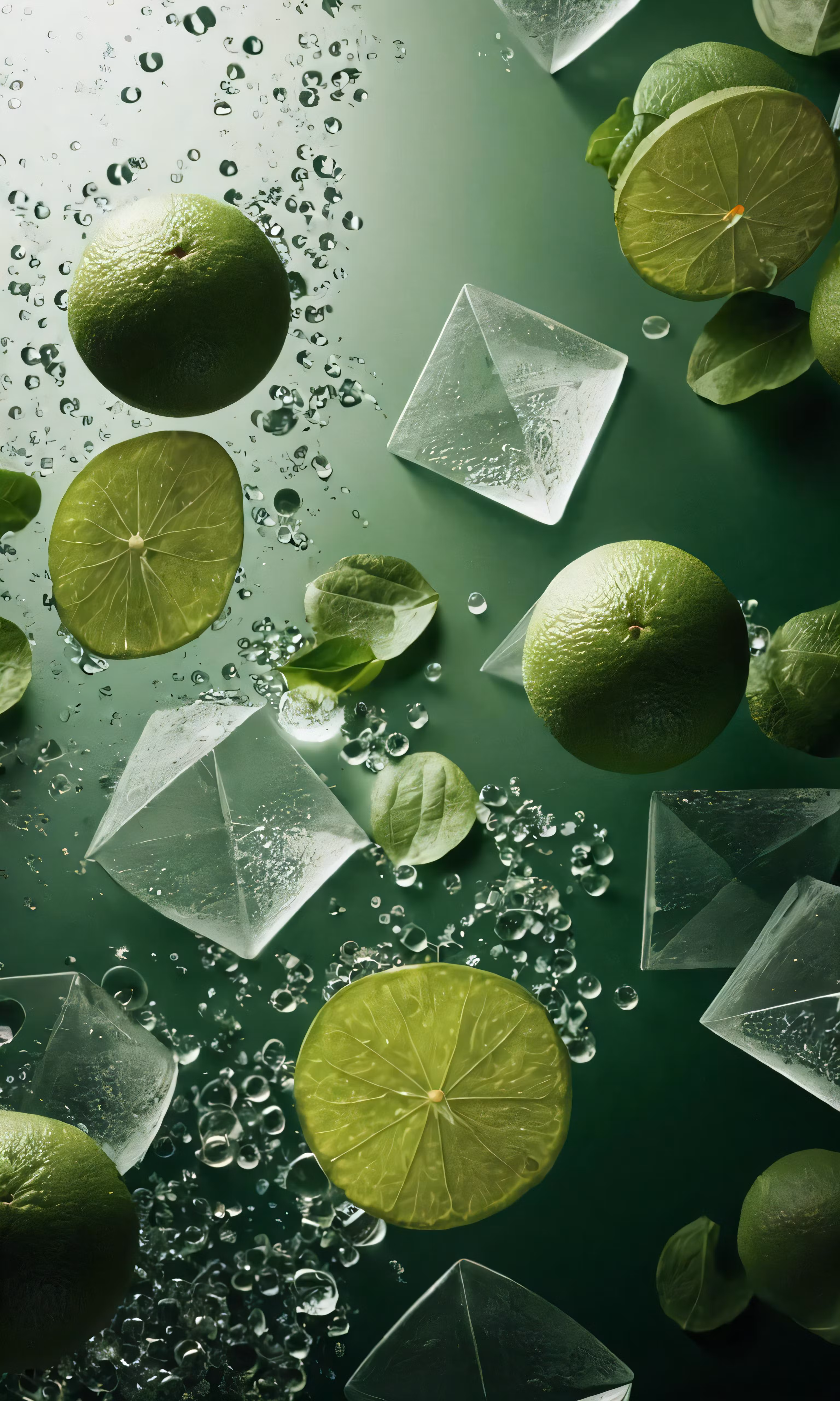 High resolution picture, free to use, limes, leaves and ice cubes floating on water