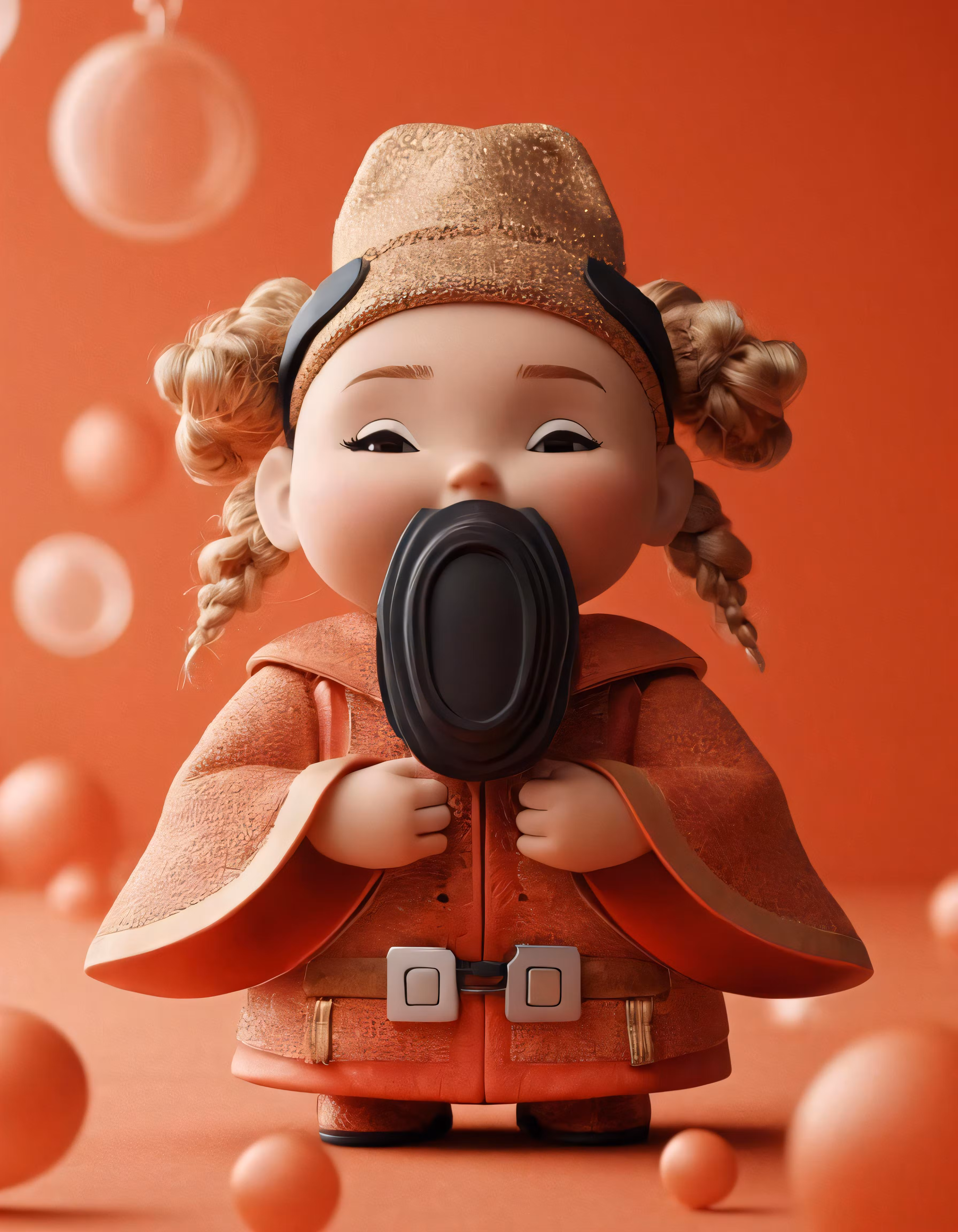 High resolution picture, free to use, little girl in red coat and hat blowing bubbles