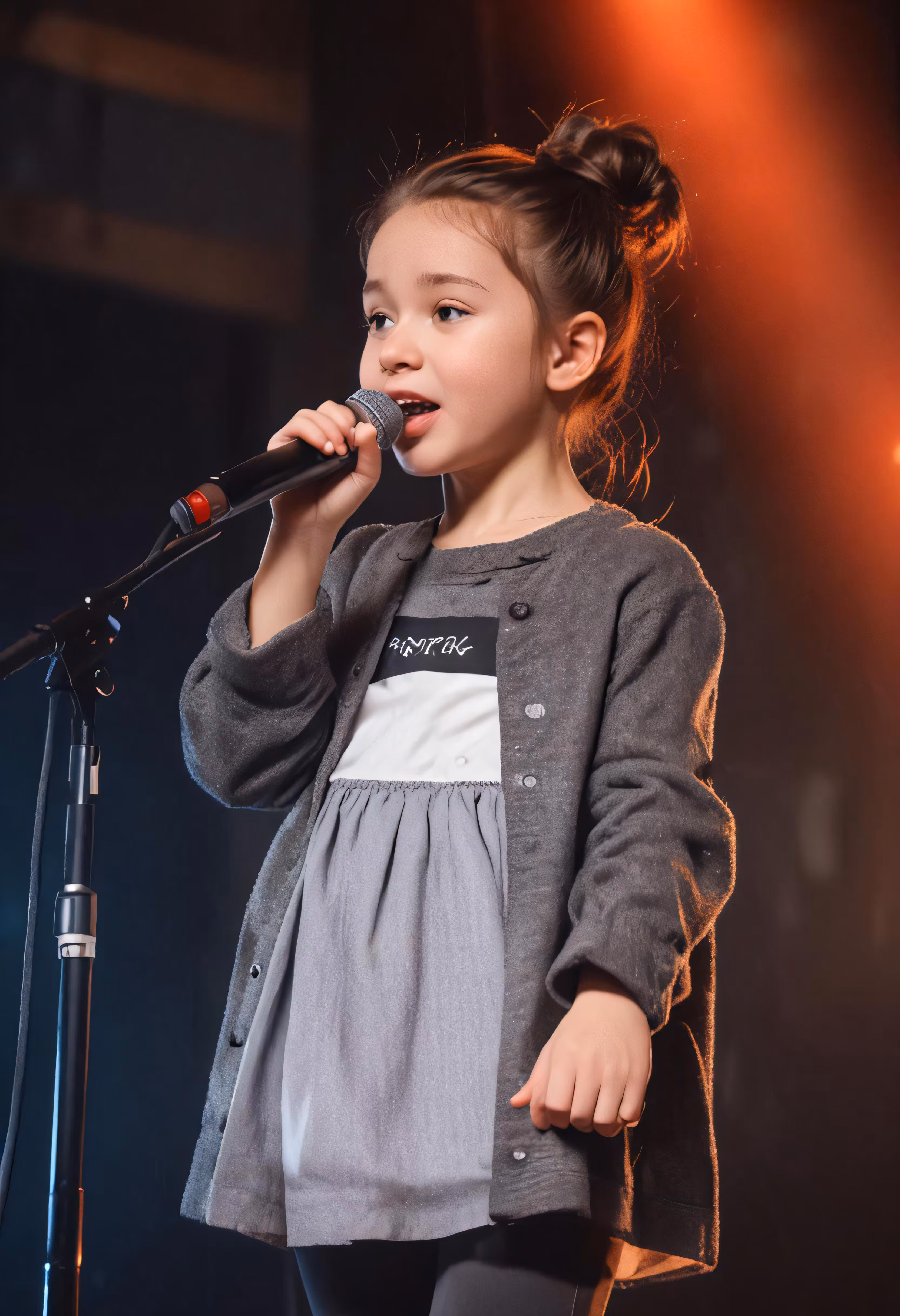 High resolution picture, free to use, little girl with a microphone standing in front of a mic