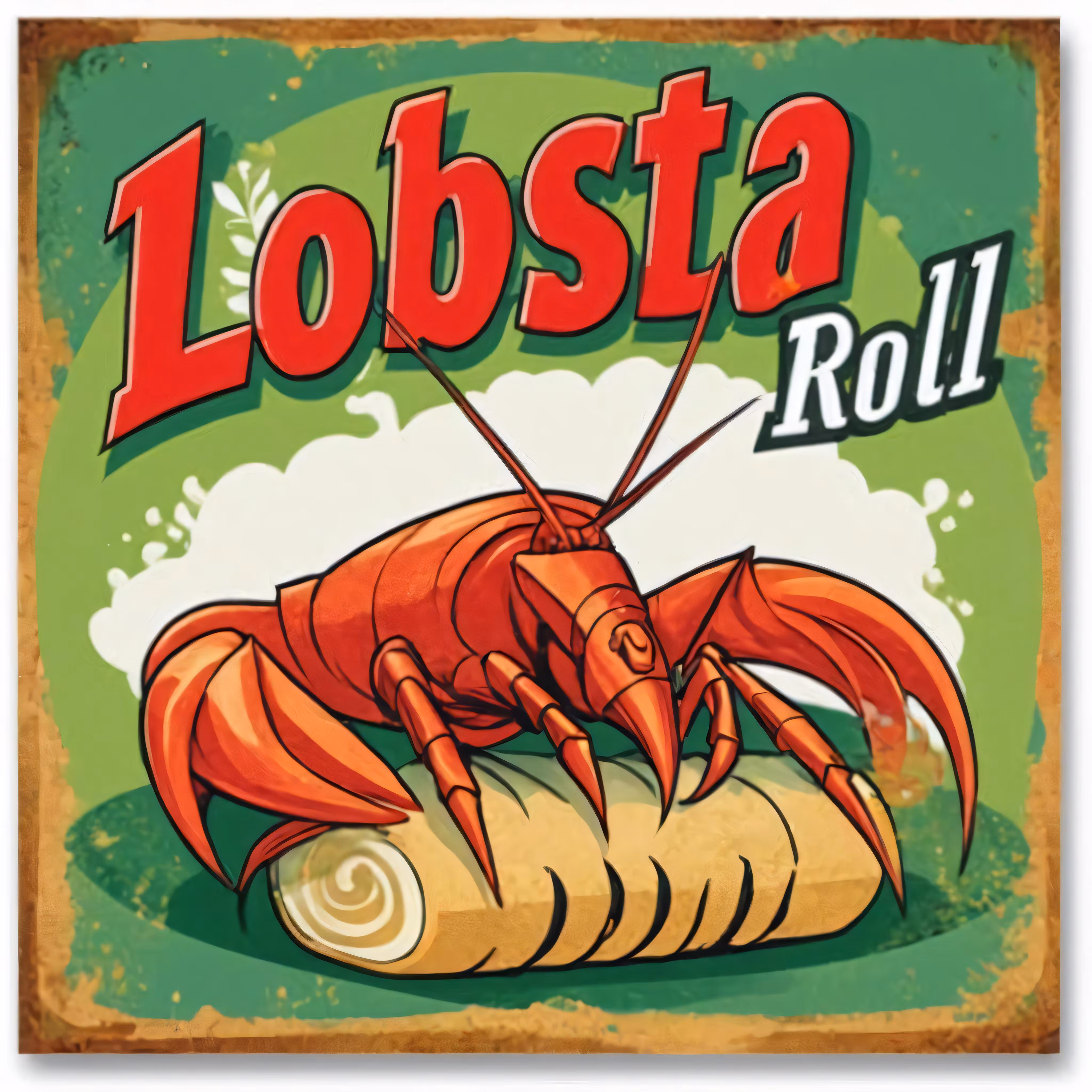 High resolution picture, free to use, lobster claw advertising sign in a shop window