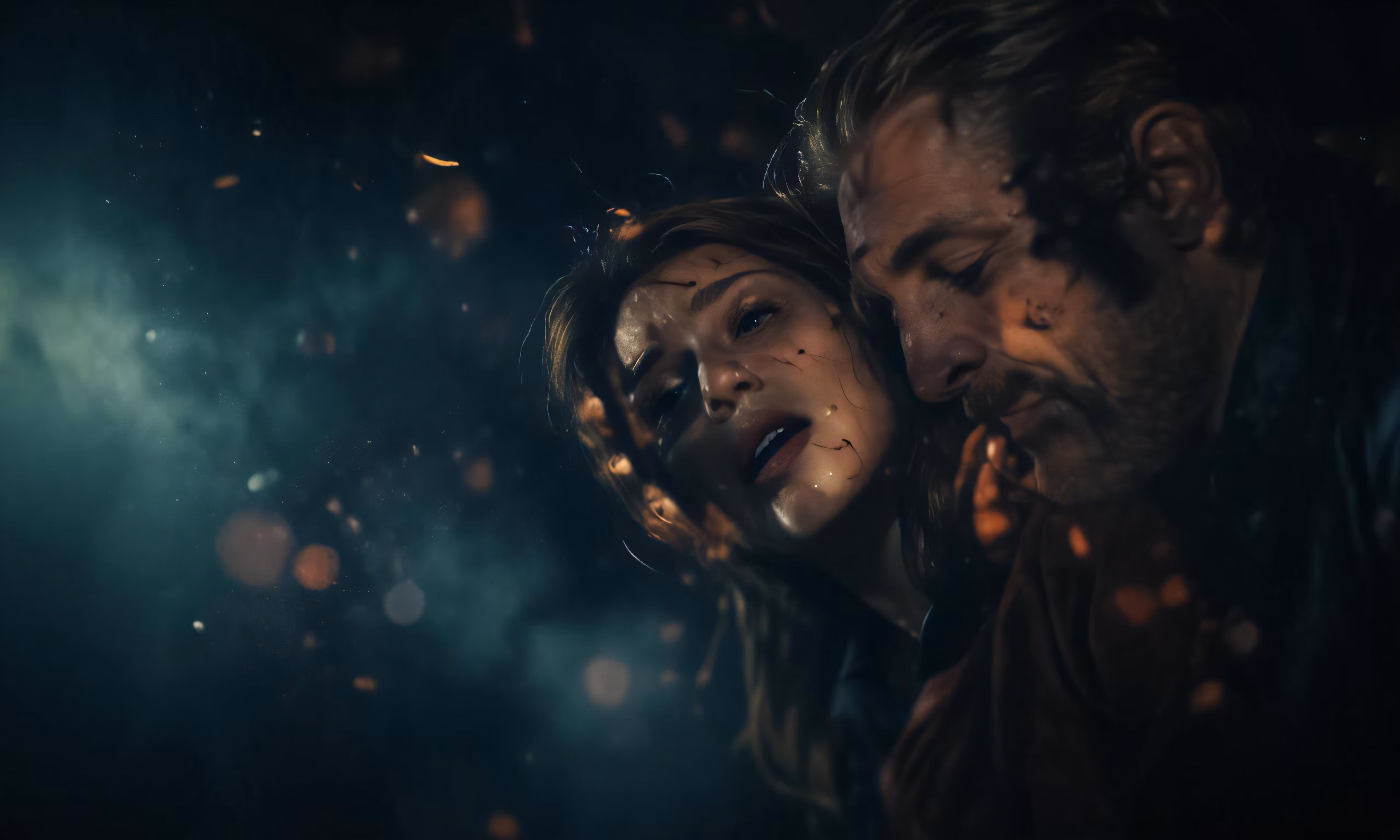 High resolution picture, free to use, man and woman are surrounded by a fire