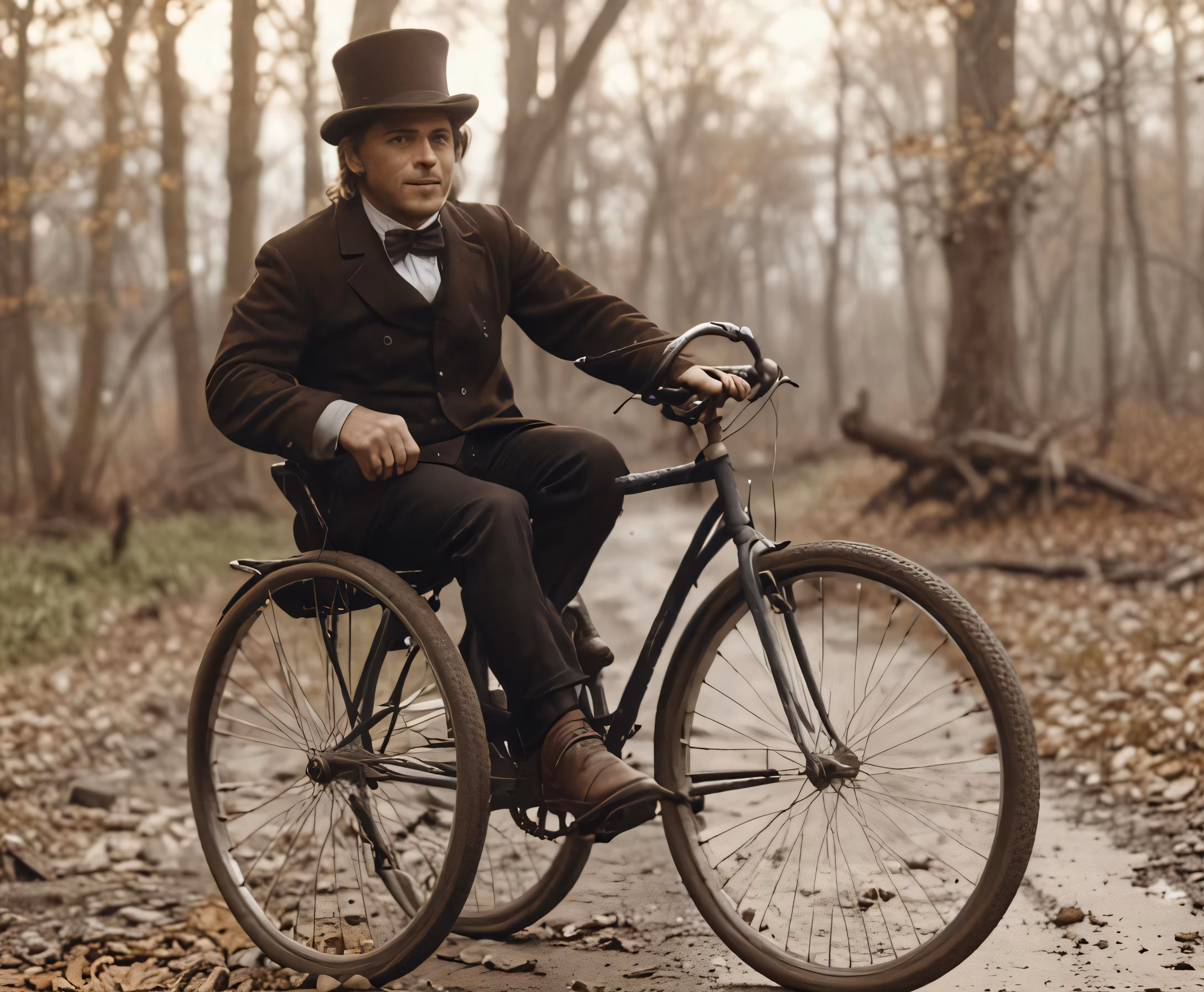 High resolution picture, free to use, man in brown suit and hat riding a bicycle