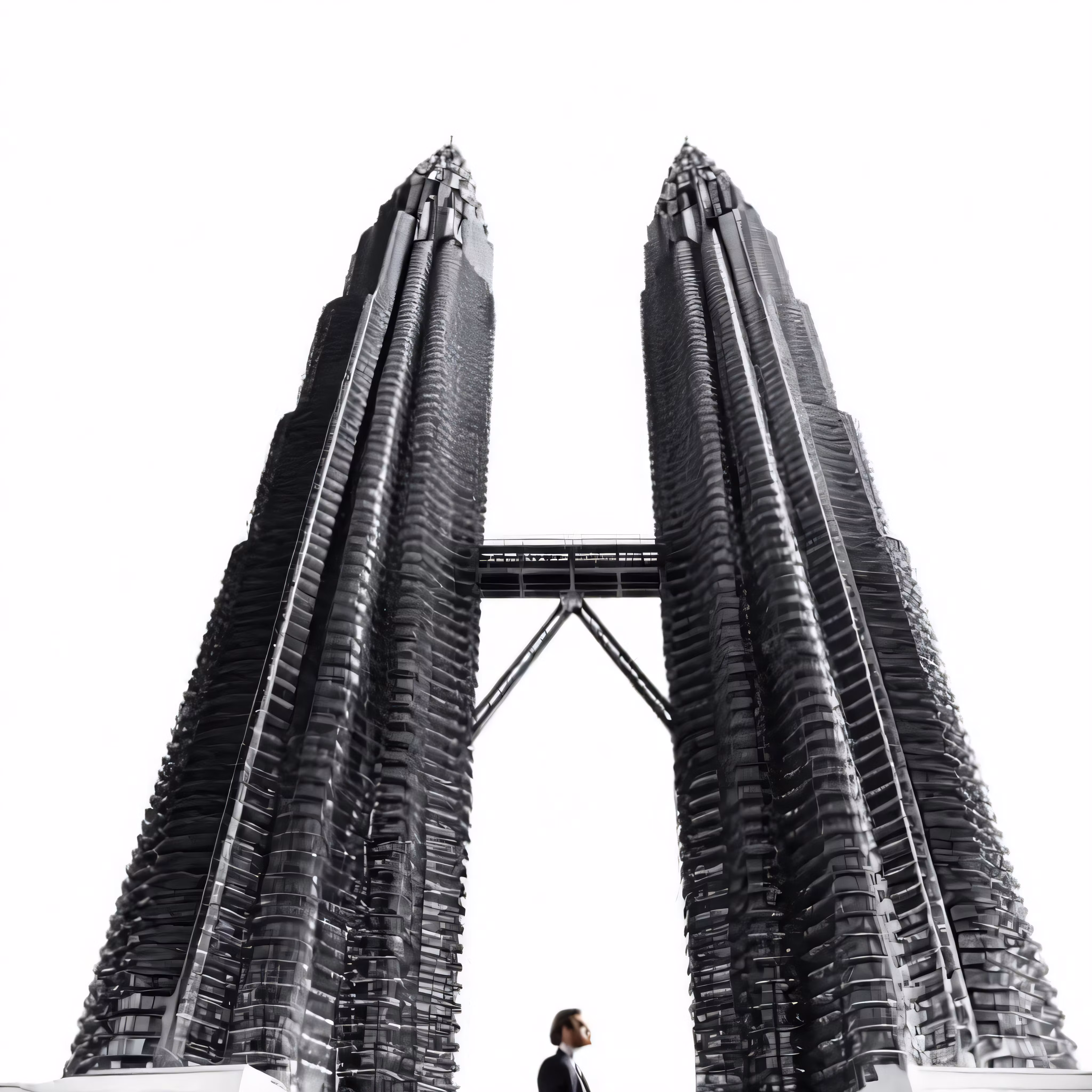 High resolution picture, free to use, man standing between two tall buisnesss in the background