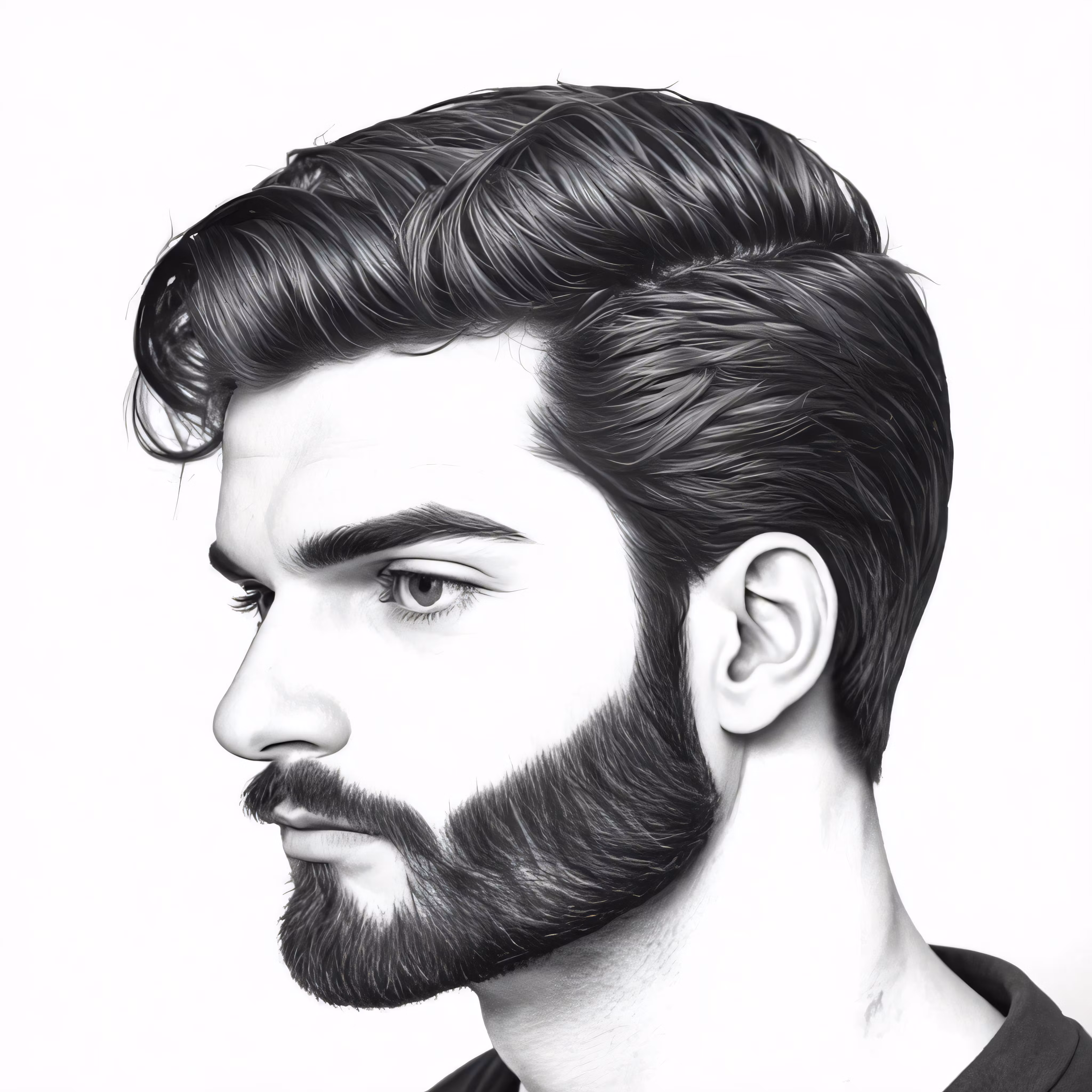 High resolution picture, free to use, man with beard and moustache and hair cut in half